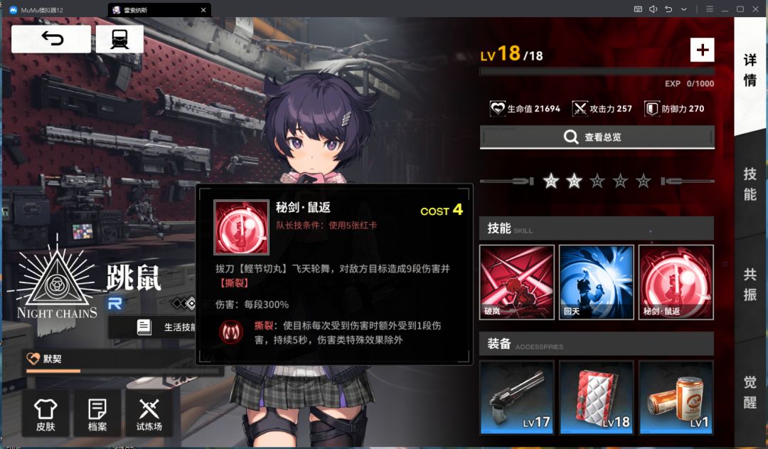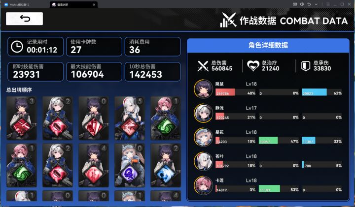 同时,苍叶在共振2激活后,红牌费用从1→0,并且可以和星花技能产生联动,快速的为跳鼠叠加攻击力增伤。