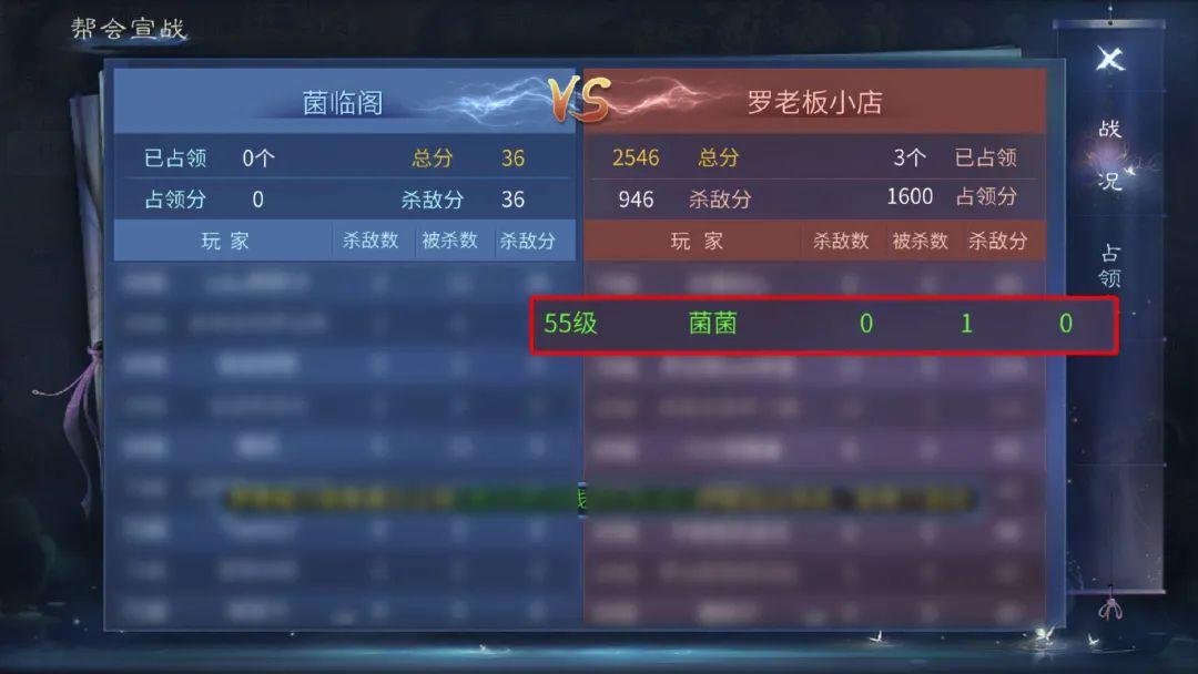 目前小店总共遭遇过两次帮会宣战,在首次帮战中,罗狮粉们团结一致守卫成功,本菌也加入了这场激烈的战斗,并且在送出了第一个人头后耻辱下线……