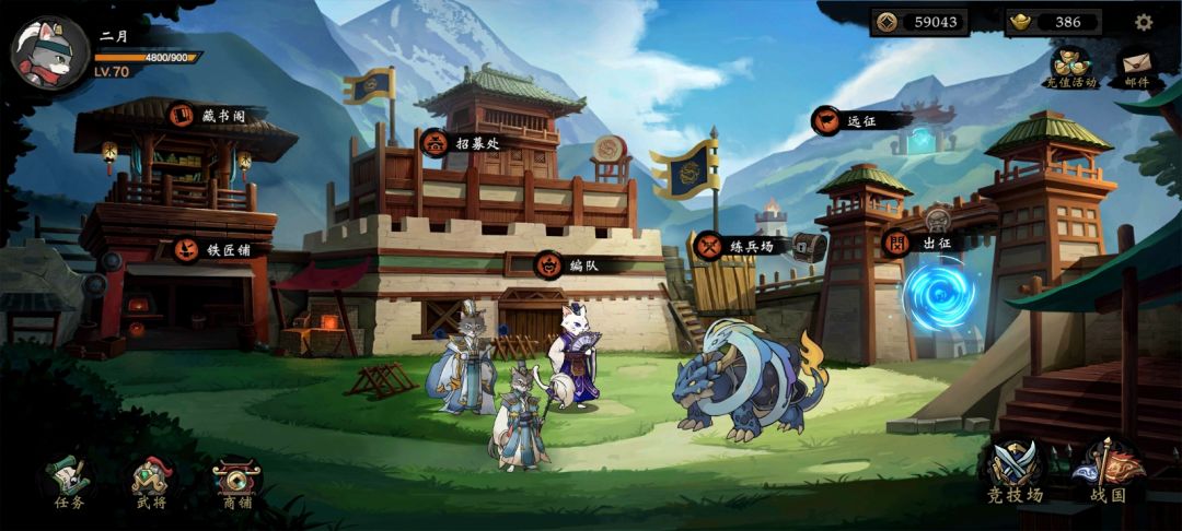 五、战国 :上线先点战国在收益练兵场,战国用来试阵容,俘虏非必要。阵容同上。