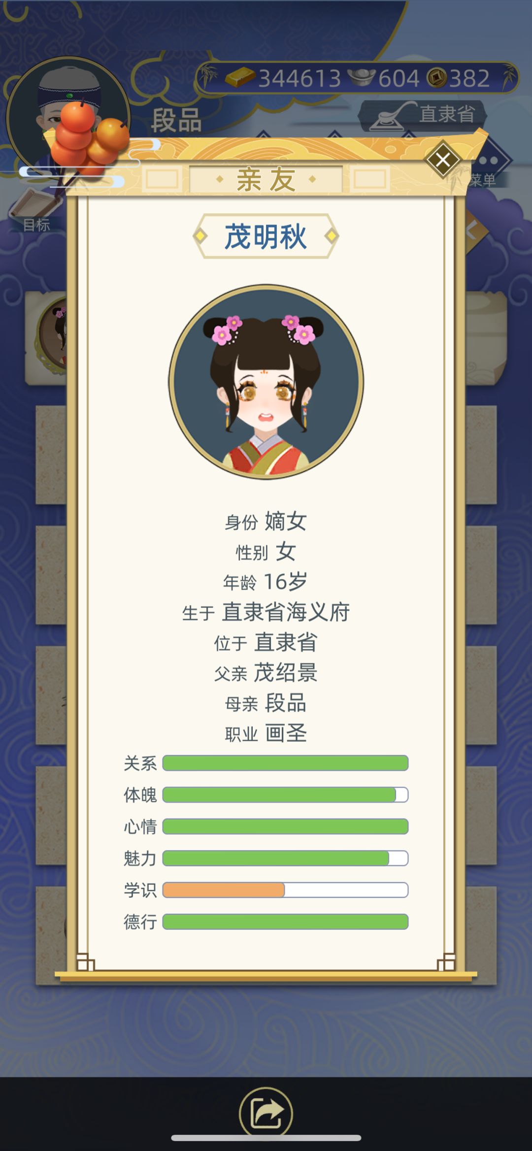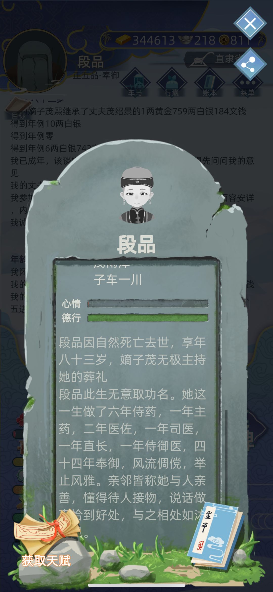 看了别人的教程 ,进宫前结婚生了孩子 ,十个女儿有七个成圣了,(还有三个儿子死读书),进宫后也成功当上了奉御