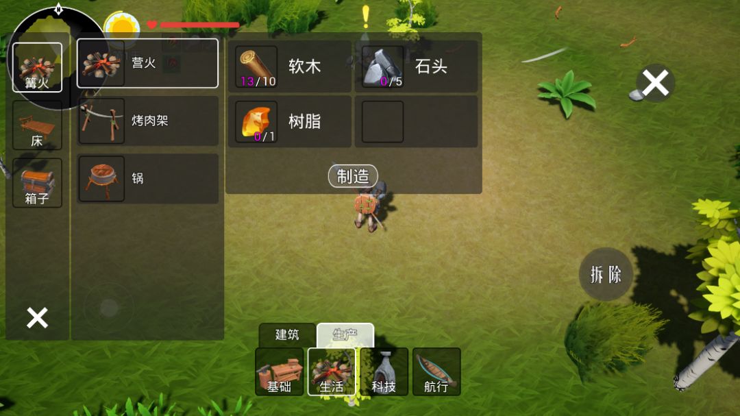 放置好后,如果想让火焰燃烧起来,需要添加燃料,初期就是木材或者树枝了。