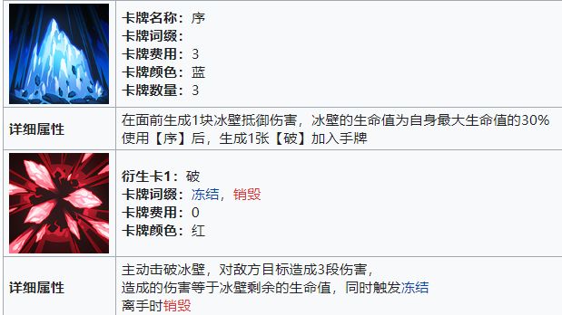 可以提高自己的生存能力,相当于一张【序】加【破】可以2cost直接提供自身最大血量45%的抗伤,但是会降低自己的输出甚至不小心会冰冻控住自己,不过这个问题在觉醒5会得到解决。