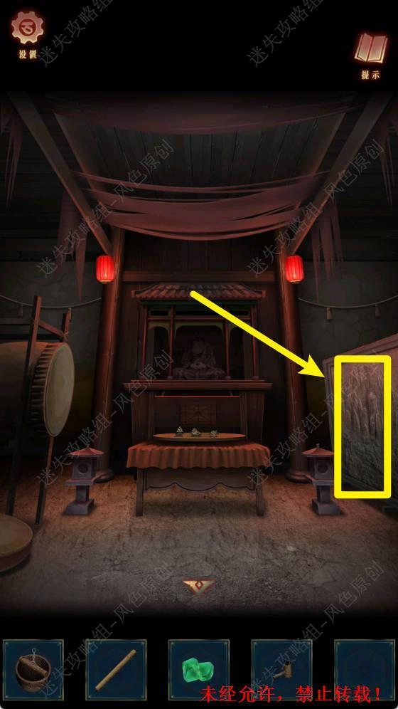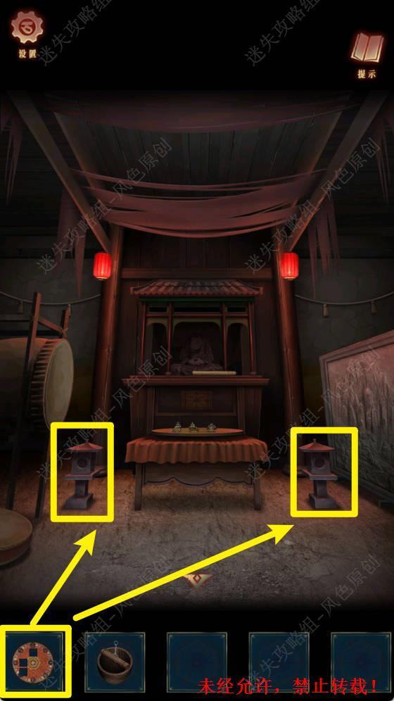 53. 根据祭拜事宜的线索提示,将六个佛像摆放为下图所示位置。可获取下方的【木制机关】和【长寿符】。 53