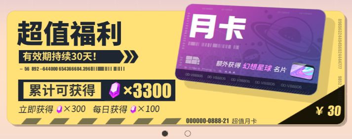购买月卡会获得核晶和【月卡·幻想星球】名片奖励,购买黑金月卡会获得黄金唱片、额外金币获取和60点体力上限的奖励。