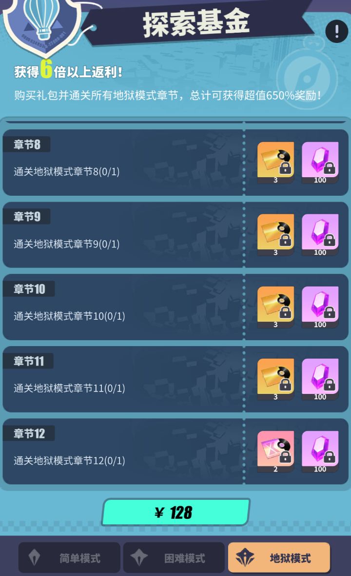 探索基金与主线剧情有关,通关对应难度主线后即可领取奖励,
