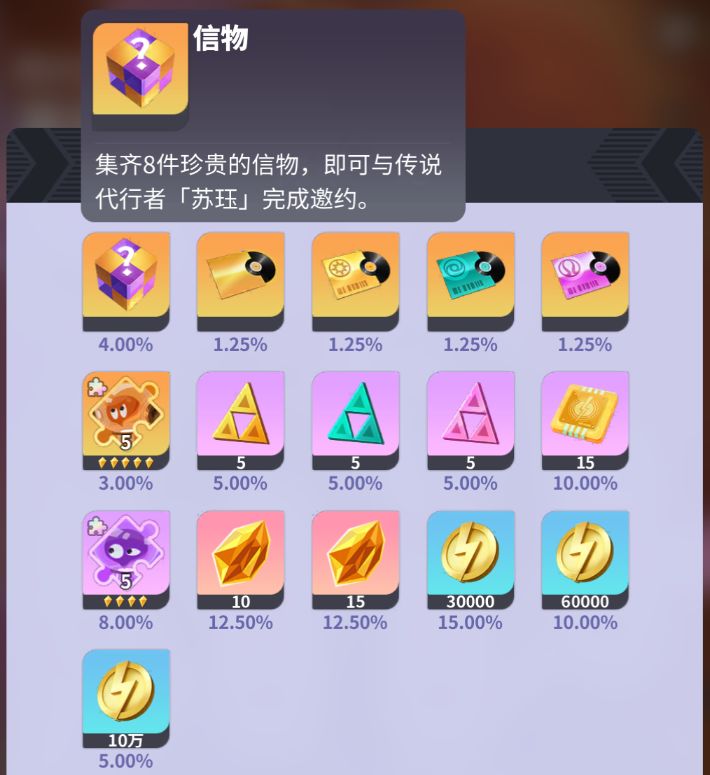 也就是说,在运气最差的极端情况下,至多需要100×25×8 = 20,000【秘藏碎片】才可以获得苏珏。但经过测试,一般不会到第25次抽取才获得信物,实际需要的【秘藏碎片】会少一些。