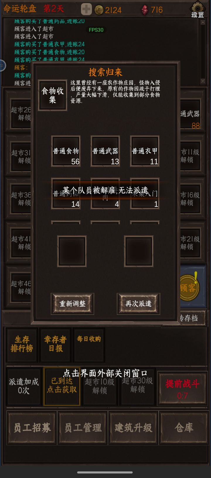 如同,第一个格子一直显示有员工被解雇,无法再次派遣,重开一局也不行
