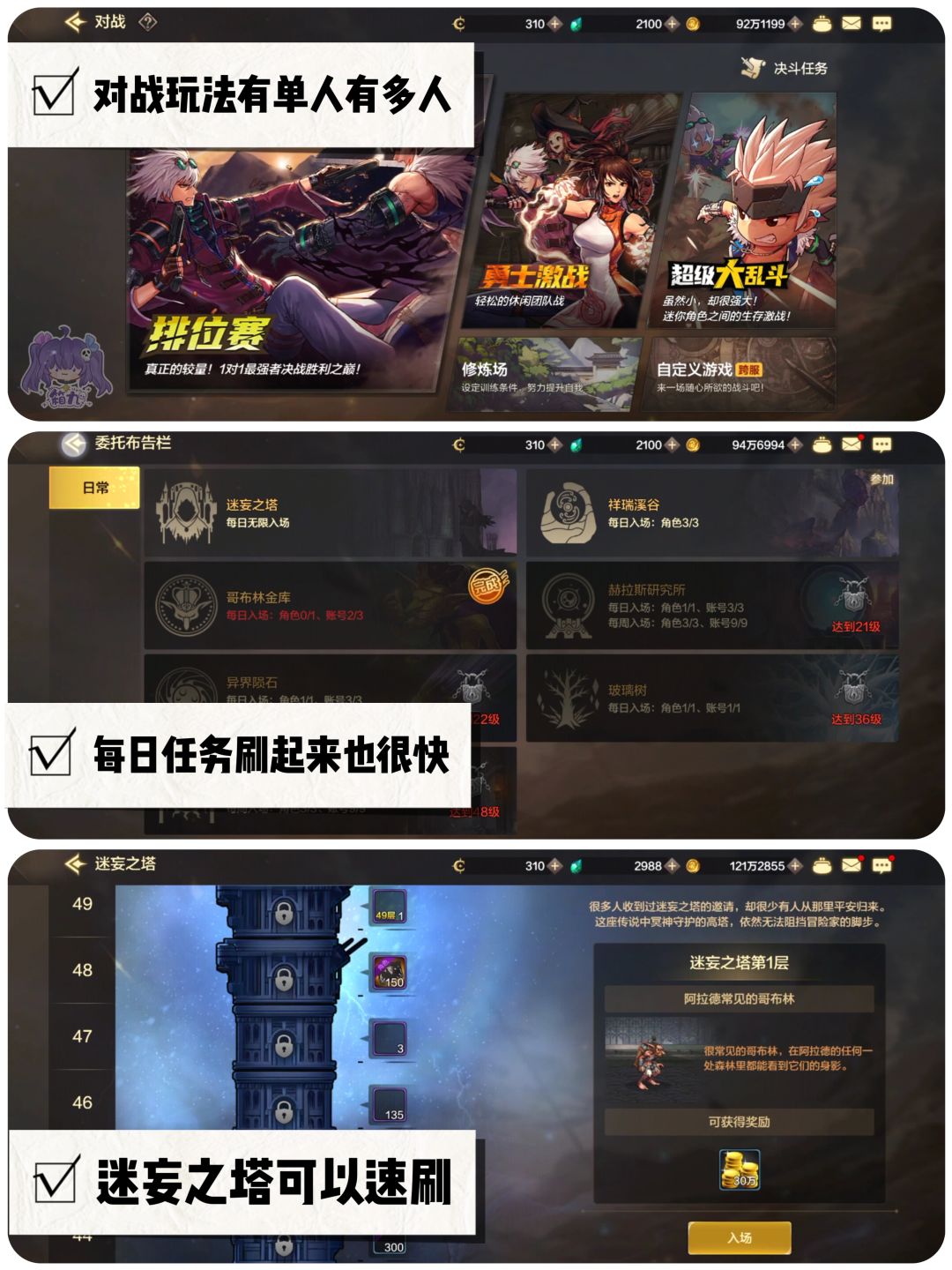 ✅对战:DNFm里每个职业的技能全部都是原汁原味,所以在排位赛(PK场)里我的表现也很原汁原味的……菜!不过呢,1V1打不过别人, 2V2或3V3我是不会拖后腿的!😈