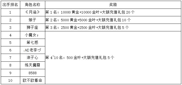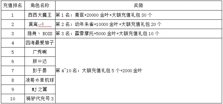 《世界OL》2月新区活动获奖名单