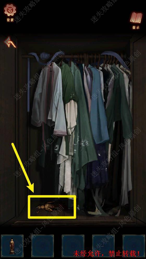 210.根据步骤206和步骤208的提示,将柜子上的五个法器调整为下图所示样子。 210