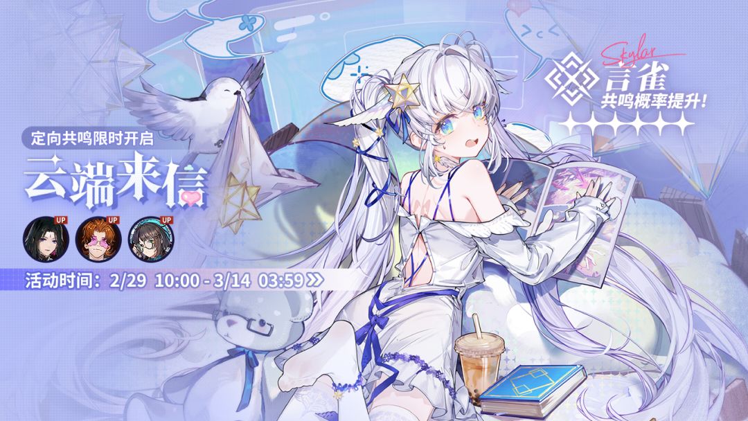 而且新手在前期获取晶粒的速度完全足够抽取言雀+后续卡池