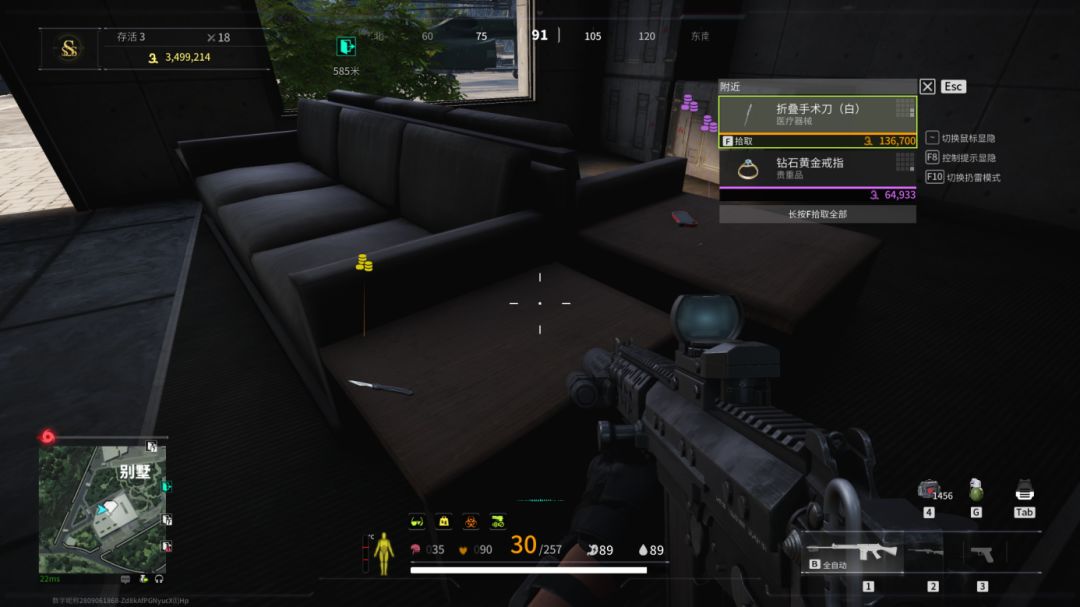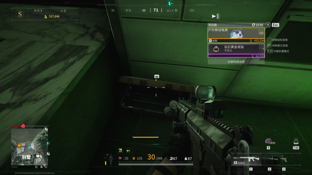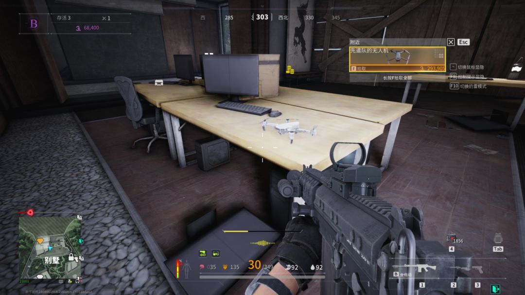 我们从上面或者下面搜度假村都行,这里有两个钥匙房,物资相当丰富,来之前记得在外面架枪看一下有没有人。