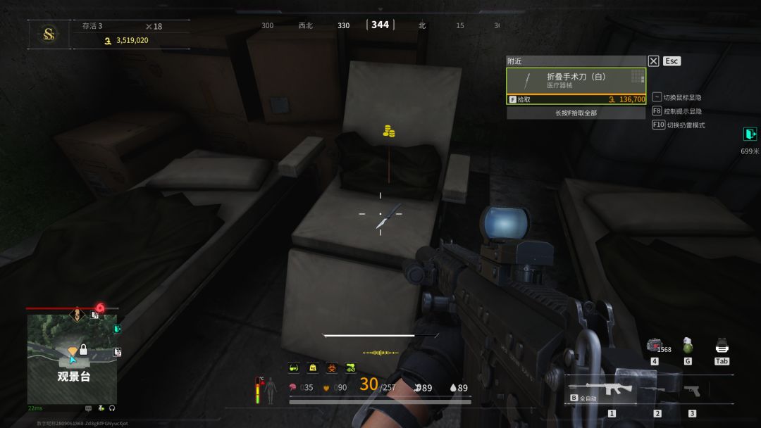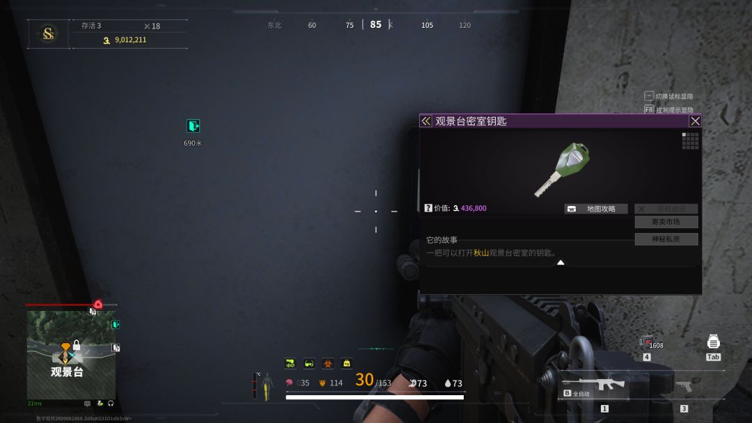 我们携带观景台密室钥匙可以打开看一下,这里会刷大量的芯片,防具,投掷物,子弹。开门的时候注意一下拌雷,保险箱可能会刷币子。