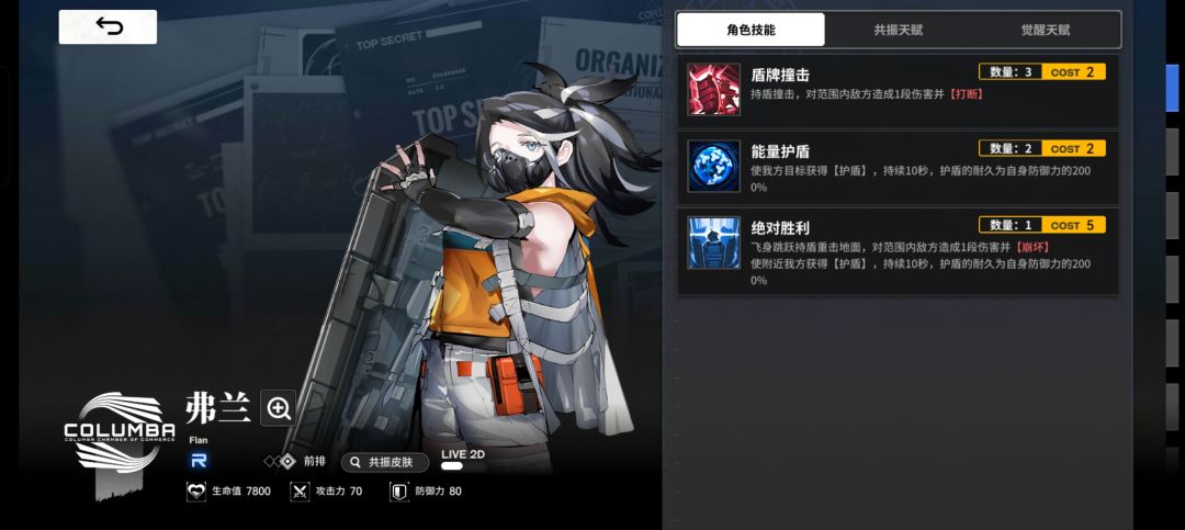 将队伍五号位替换成弗兰等蓝卡角色,和莉维娅一起用蓝卡给夏洛蒂叠盾。