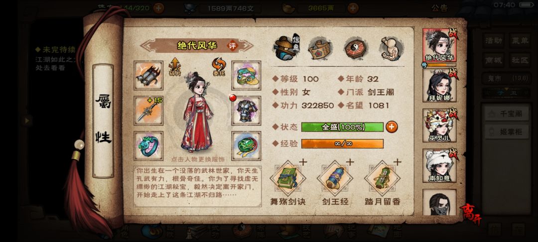 以及无凌波女剑阵容(可以看出还有许多能提升的点)