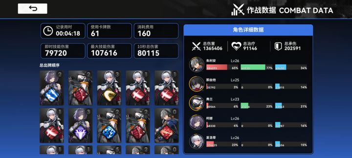 主线完了开始搞钱,如果过不了主线建议练朱利安,因为共振和觉醒及队长技使她具有超一流的单挑能力,非常强大,他的大招根据费用倍率为500%X4X8~500%X4X12之间,,单体伤害不会溢出且大招不锁技能条,技能期间能回费再等四秒就能放大招,可怕的是放完还能回血,另外一个霸体免伤回血技能,一个烟雾弹群控技能,一个能回费的衍生卡。