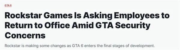 据IGN消息,由于《GTA6》即将进入开发的最后阶段,为避免再次出现泄露事件,Rockstar Games正要求员工们从四月起重返办公室,需每周到岗工作五天。