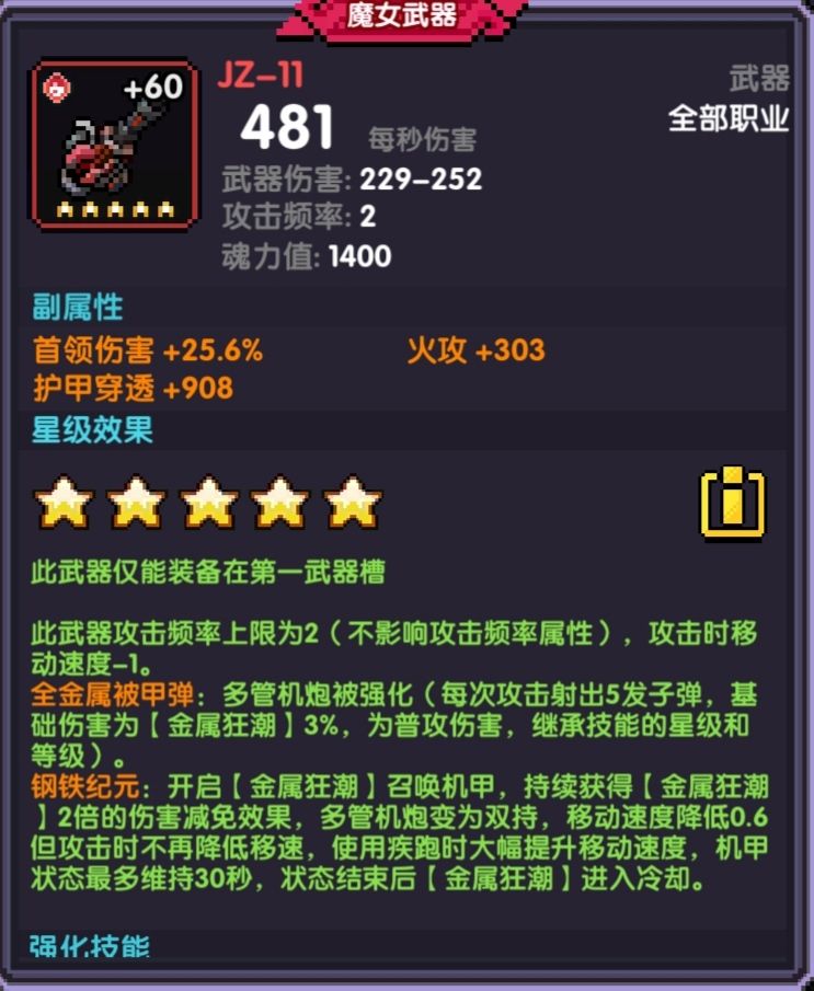 一般魔女武器是洗火攻。但是这把武器给的爆伤很高。