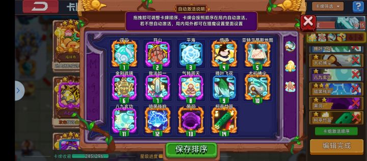 仙剑奇侠传,法修➕御剑,其实前面十一张牌基本上必带,也就后面四张能变动变动,要是开头带张冷水,那就后面三张牌能变动,随便带就行了,竹子残响,反正一局差不多也就激活那么十二三张