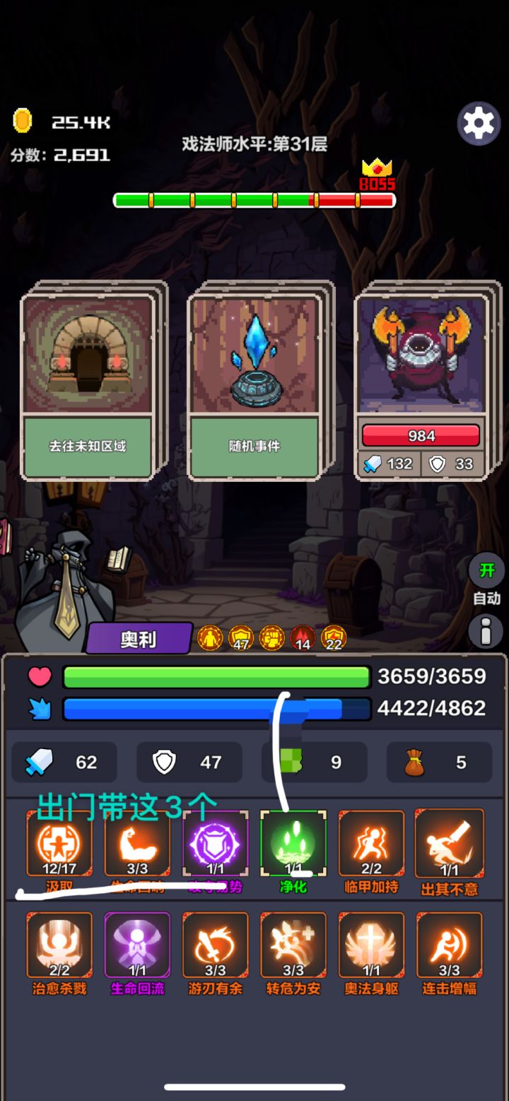 出门带吸取,生命回响,攻守易势,前期碰到净化推荐带,防止老板叠毒叠流血,后期作用不大,临甲前期碰到推荐带,配合护甲减伤,连击增幅无脑输出,其他的就是出转危和奥法,从此角色大成,全程加吸取等级上限。