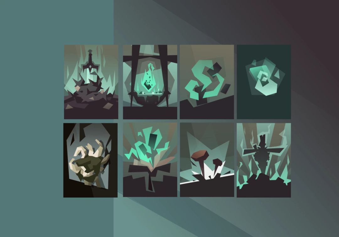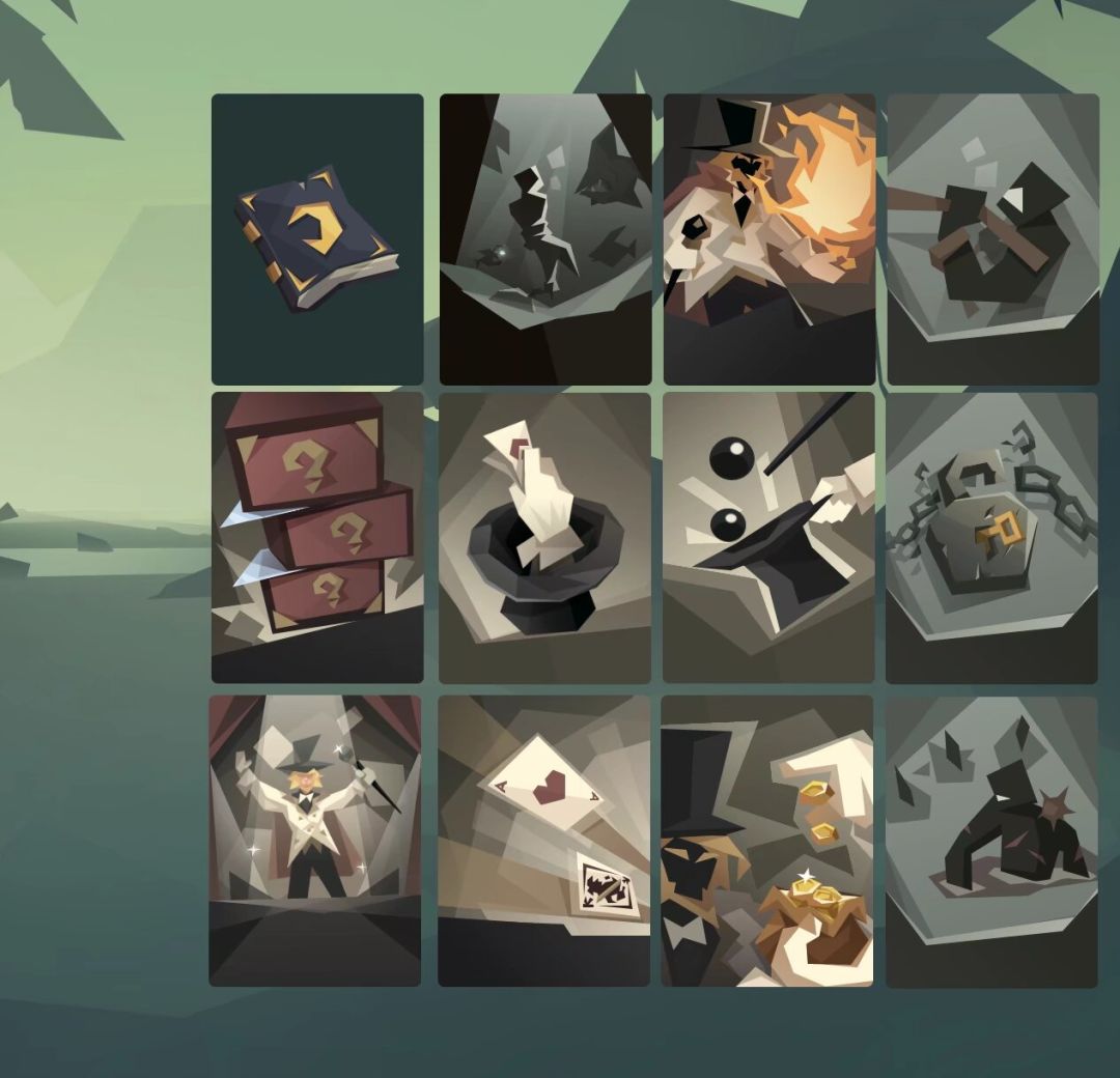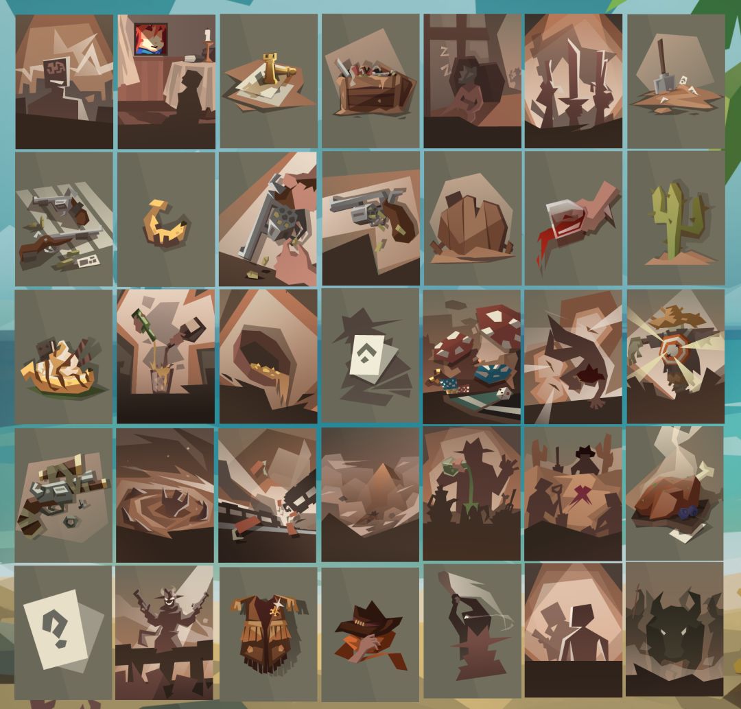 35张技能卡,6张诅咒,20个遗物,10张近战卡。还有未完成绘画的11张远程卡…