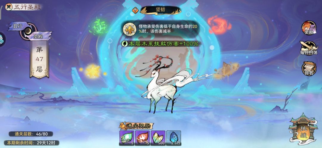 4️⃣具体规则:五行圣殿每期都会有不同的妖兽和法则。每层的妖兽会携带一条属性(五行属性)和一条特质,只有具有对应属性的弟子才能上阵,而妖兽的特质会增加关卡的难度。同时,会有一条法则贯穿整期圣殿,这条法则每期都会发生变化。