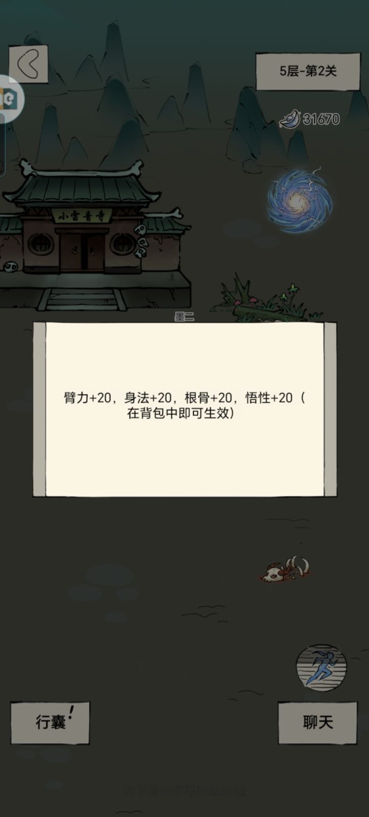 第五层事件会遇到醉道士给你开个光,变成+20四维。