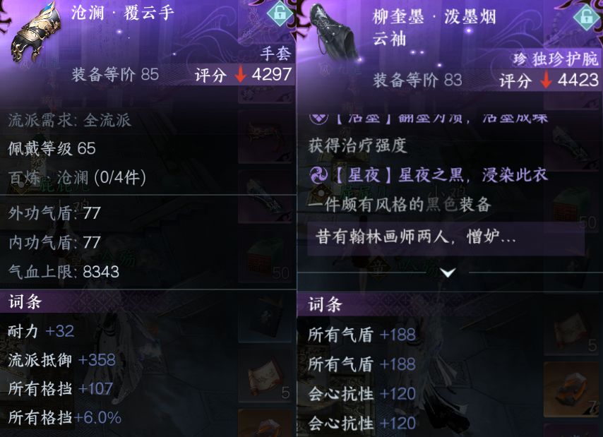 首先装备:防具我们选择85沧澜四件套配黑袖子