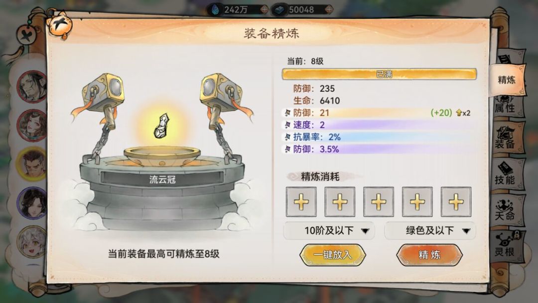 4.精炼石也分品质,品质等级和装备相同,品质越高,精炼时给的经验越多。