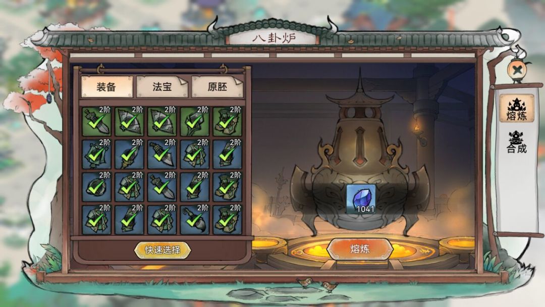 八卦炉熔炼装备时也可以熔炼自己已经穿着的装备
