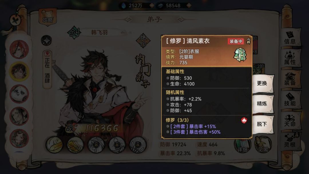 俗话说,人靠衣装,弟子的战力很大一部分是由装备撑起来的。