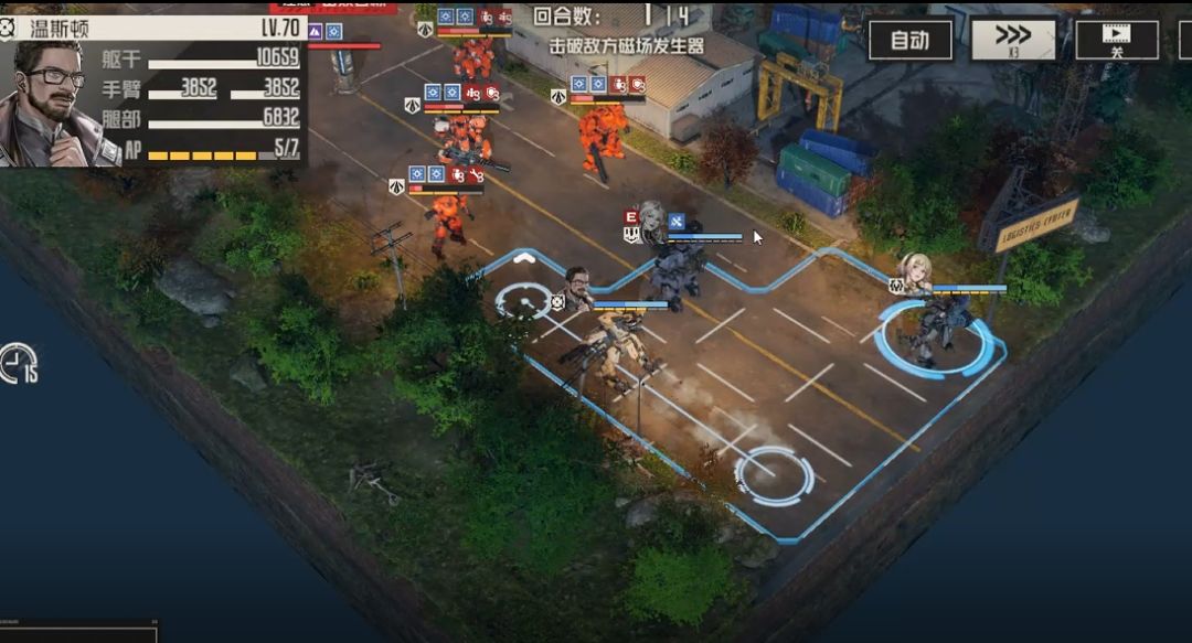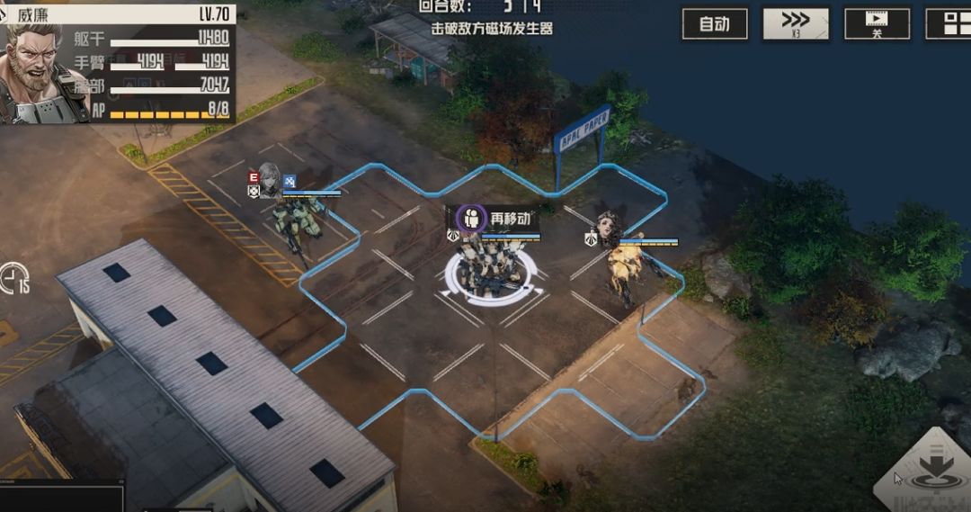 下边三人往右边靠拢,直升机附近位置要占住,否则下回合敌人刷新后,温斯顿无法攻击到直升机