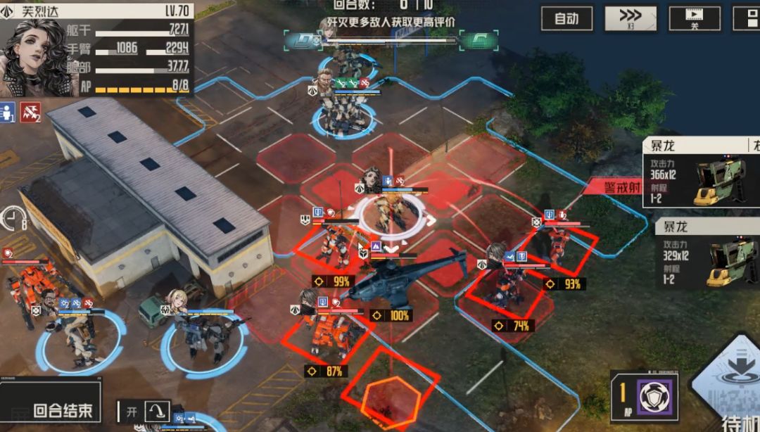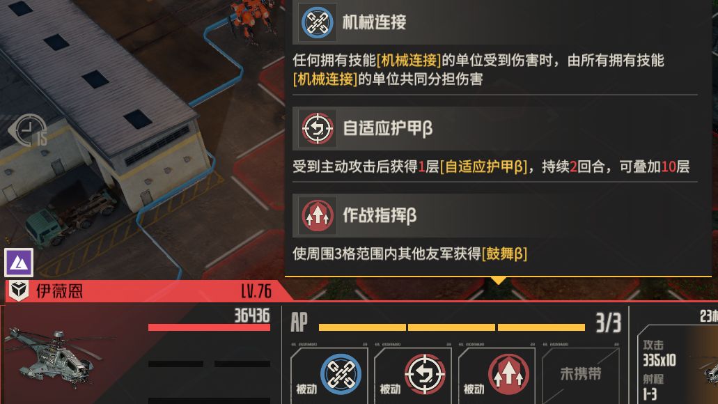 2、 直升机每次受到攻击,就会获得叠加一层减伤,多次攻击显然效果不佳,需要采用高额的单次攻击作为应对,减少攻击次数。此buff持续2回合,每次叠加会刷新持续时间,所以不能连续每回合都攻击