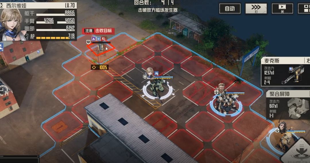 西尔维亚这里要攻击4个目标,消灭威廉左边敌人,破坏威廉后方长柄兵武器和右边战术兵武器,再攻击一次重机枪兵