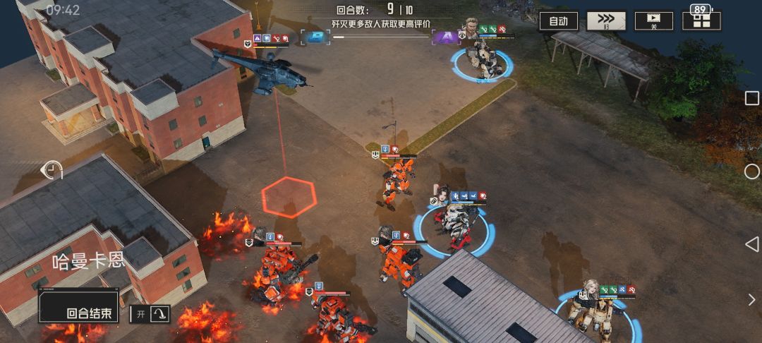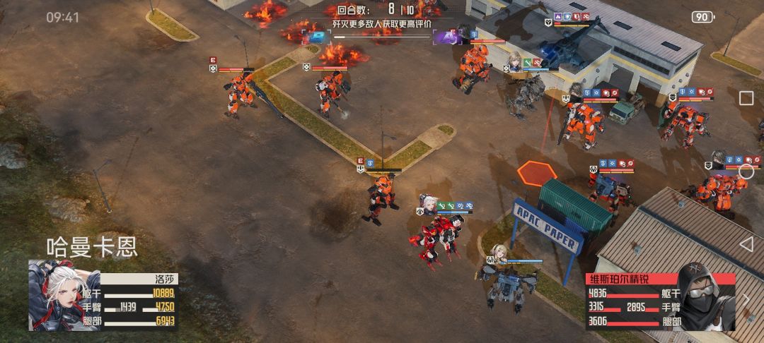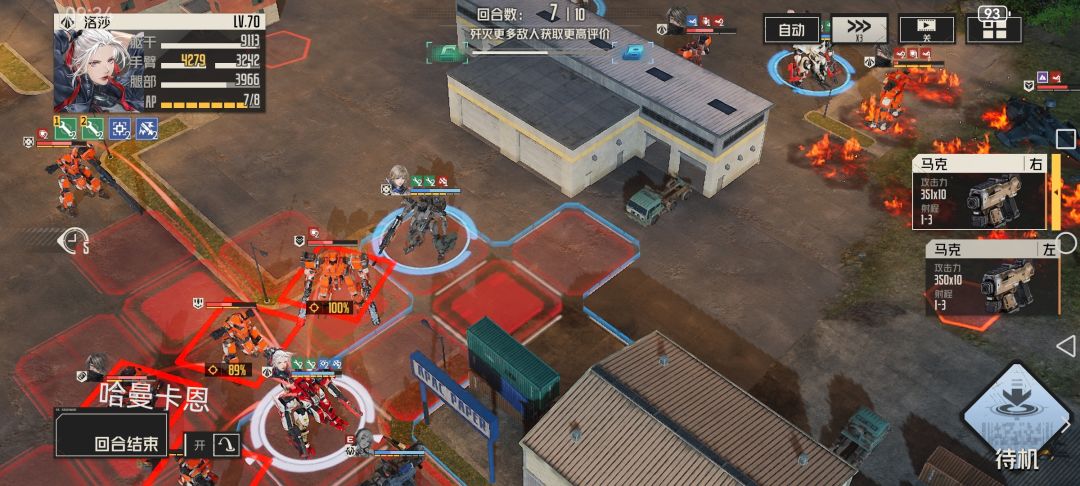 前四回合略,第四回合站位如图,虹清场上路只留一个格斗家,重机枪手必须干掉,需要sl一下暴击,伤害实在不够可以拿西尔维娅补刀(下一回合还需要西尔维娅攻击上路新出的重机枪手) 艾琳攻击下路,西尔维娅清掉左边第一个,留双机枪,其他断手即可,还有多的次数攻击boss