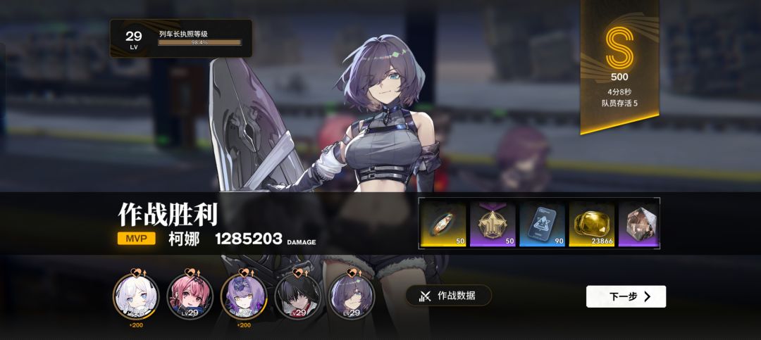 柯娜:慢热爆发,需要一分钟左右预热,所以前期需要靠其他角色刷蓝牌加速,前期手里有蓝盾能留尽量留,预热完毕变为群体爆发,5000%倍率爆盾+8500%大招,同级可秒,所以第一层可以适当延长一下时间,预热完毕再进入下一层