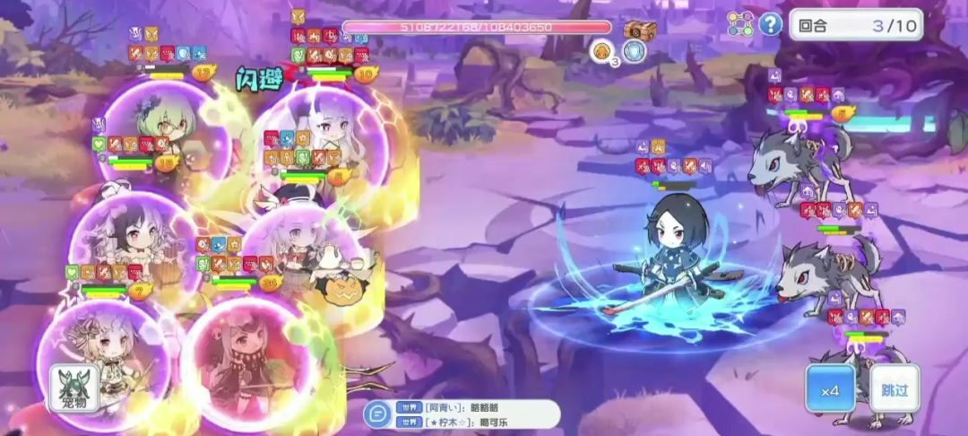 这里是实战模拟,双方宠物减能后依然可以完成三动,甚至第三次行动还是满怒涛增伤的行动,首回合三动,后续回合也能保证两次行动。