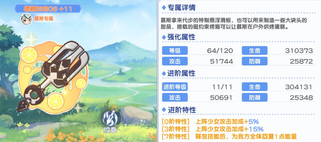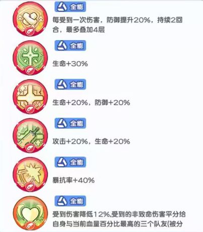 专属核心的效果也非常简单,全队攻击加成和回能,增益和辅助效果拉满满。