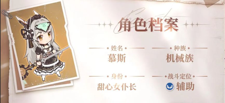 慕斯属于机械族辅助型少女,拥有一定量的治疗和附着【生物盾】的保护能力,拥有直接减控和高额回能的霸道辅助能力,专属核心还有攻击加成的增伤能力,最重要的是还有【再动】的可怕能力,她自己也是个多动症,玩法非常丰富,是一个非常值得抽取的角色。各种场合表现都非常优秀,