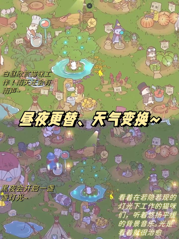 游戏画面温馨可爱,色彩搭配柔和舒适。轻松愉快的旋律,软萌治愈的音效。带上耳机🎧细微的猫咪叫声、料理的汤水沸腾声、下雨的滴滴答答声....真的太治愈解压了~