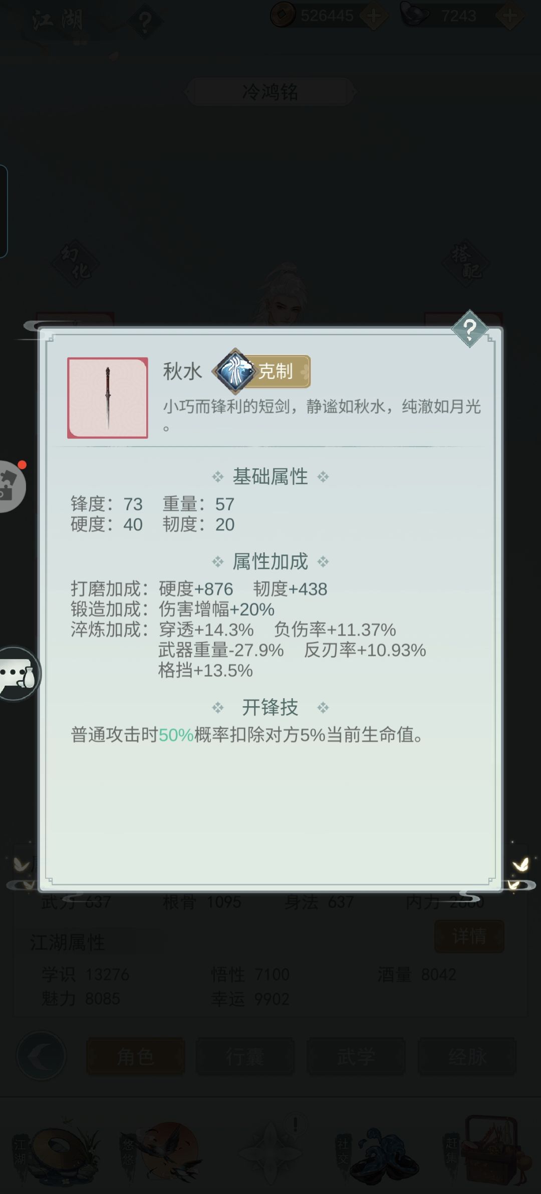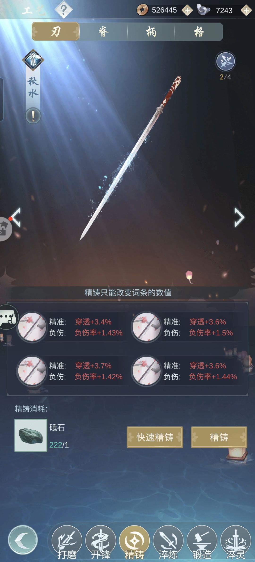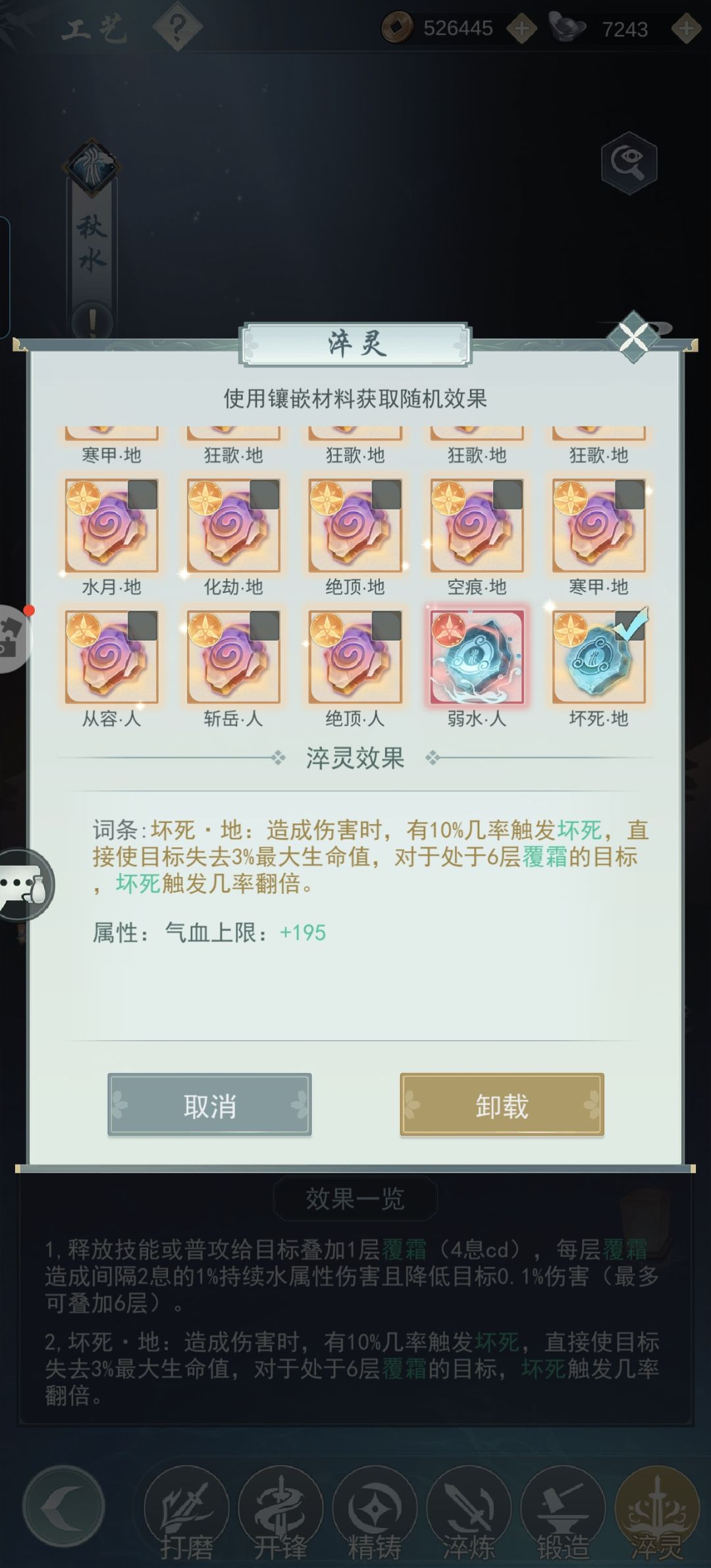 因为一般攻略里的疾风骤雨、秋水瑞荷等条件我都满足不了,所以我别无选择只能另辟蹊径。没想到还真给我摸出一条路子。 轴为:流风回雪-光阴劫-影子替身-光阴劫-魂灭斩剑用秋水,我自用的是红莲,一级即可。坏死要有,橙色玉就行。精铸洗八负八反。能全红自然最好,我自己是两部位全红。 剑式为四凌波+二魔刃,没有四凌波的话,四太极应该也行。经脉最好开局7豆或8豆。 凤澜的BUFF不选反刃和回血,其他的刚好满35。 大概就这么多,也欢迎大侠们指正,我会在评论区补充
