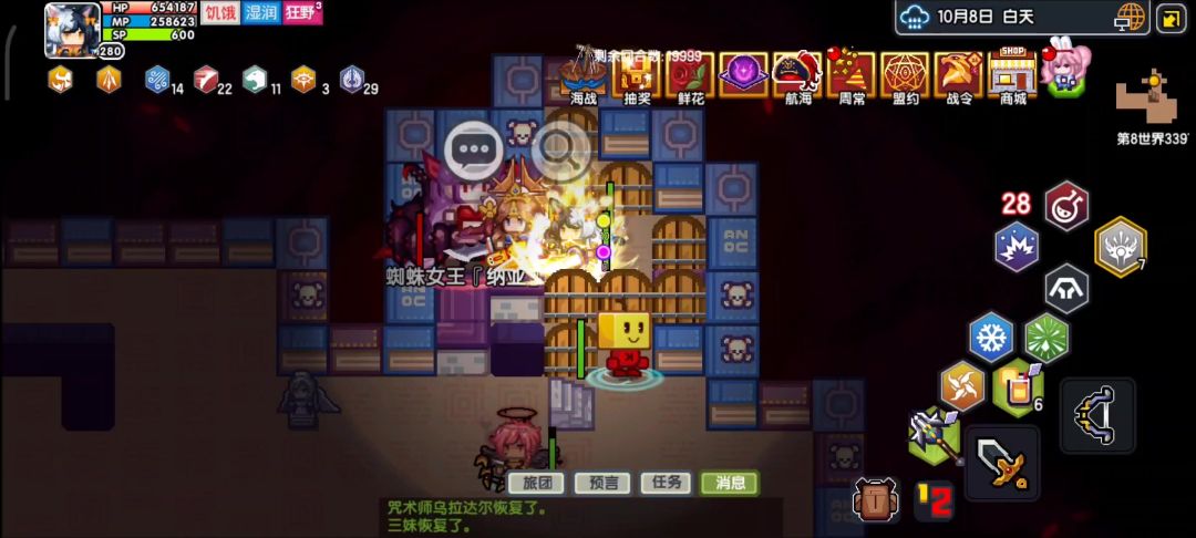 5.瞬移到王城左下角苹果树附近,召唤魔物,厄洛斯攻击怪物触发buff。骑乘开罗君,同时把幻沙拉到相邻一格,开罗君攻击怪物触发buff。天使护士挂暴力注射。
