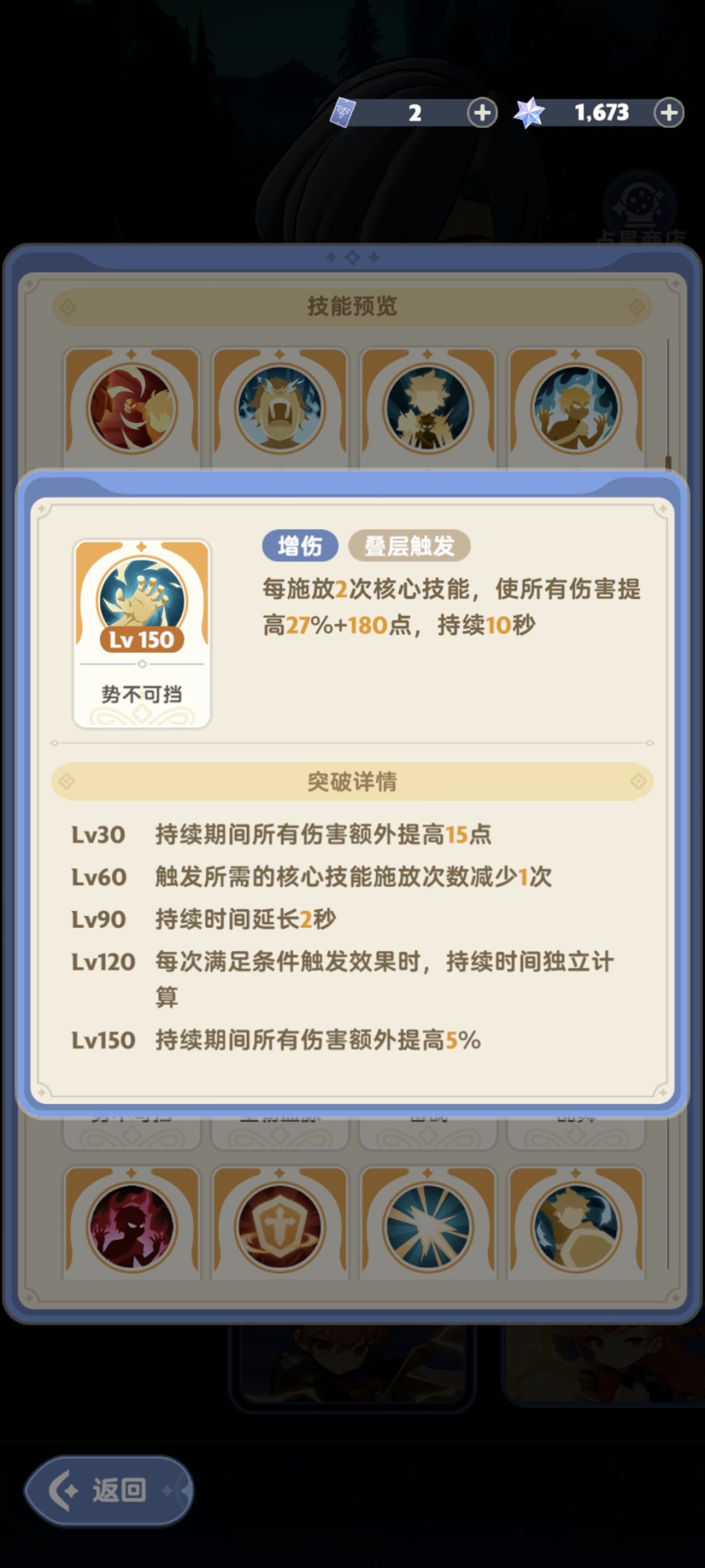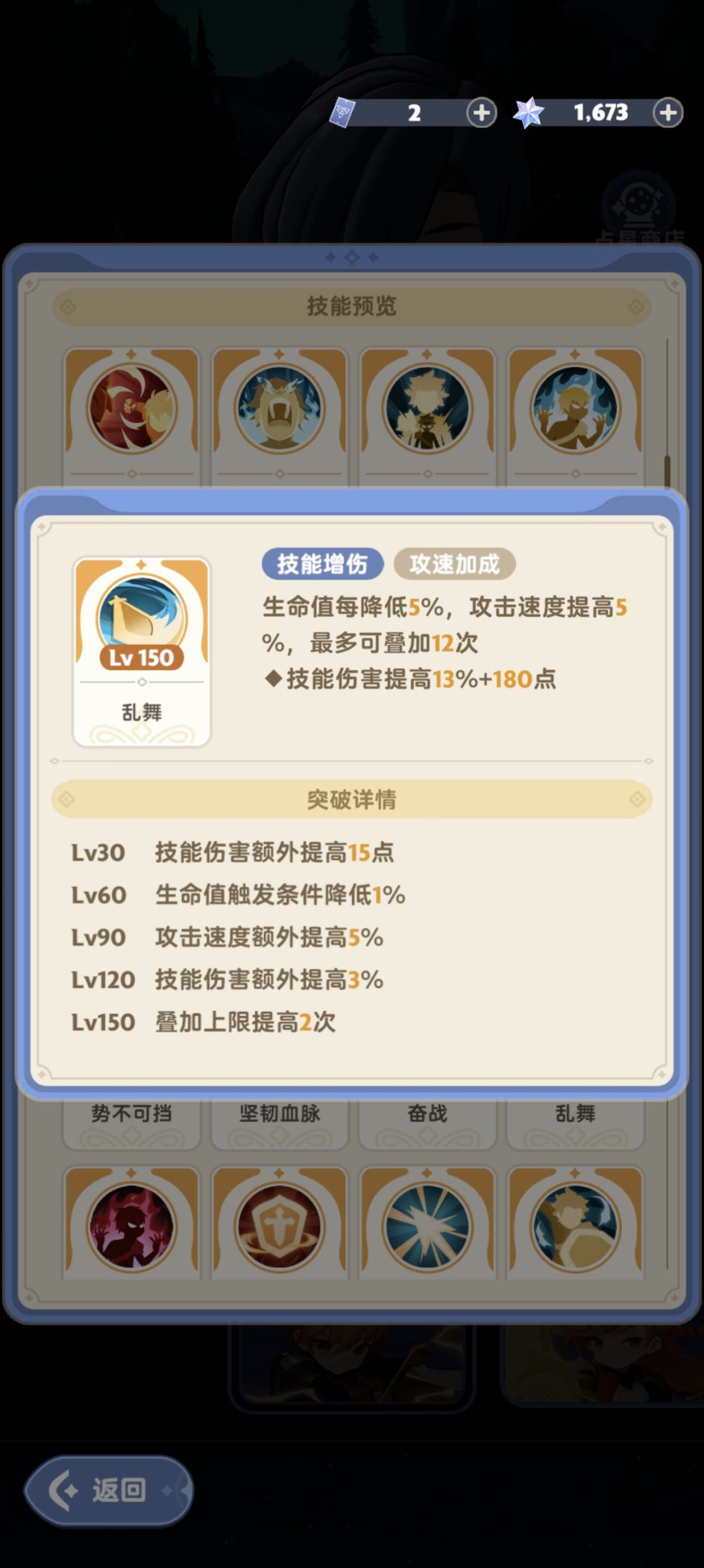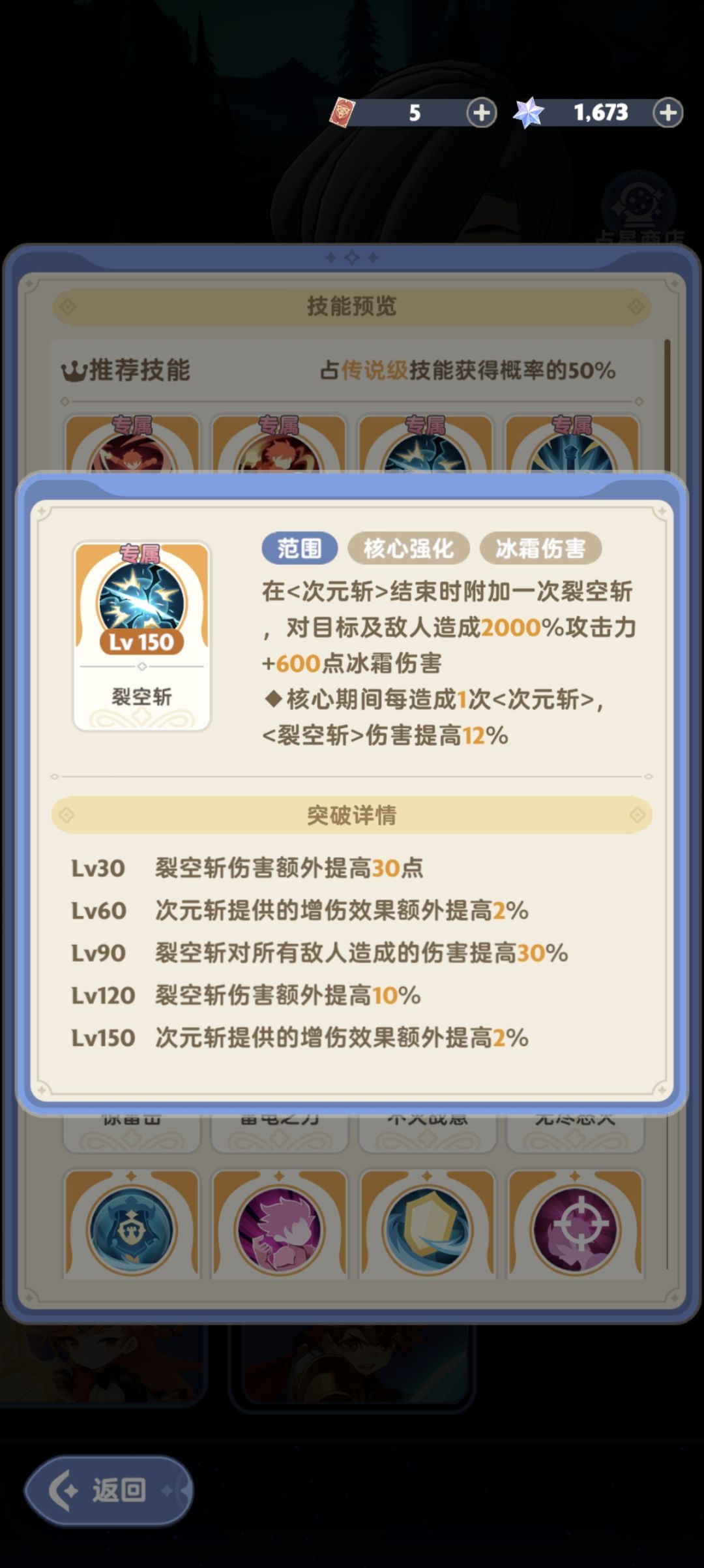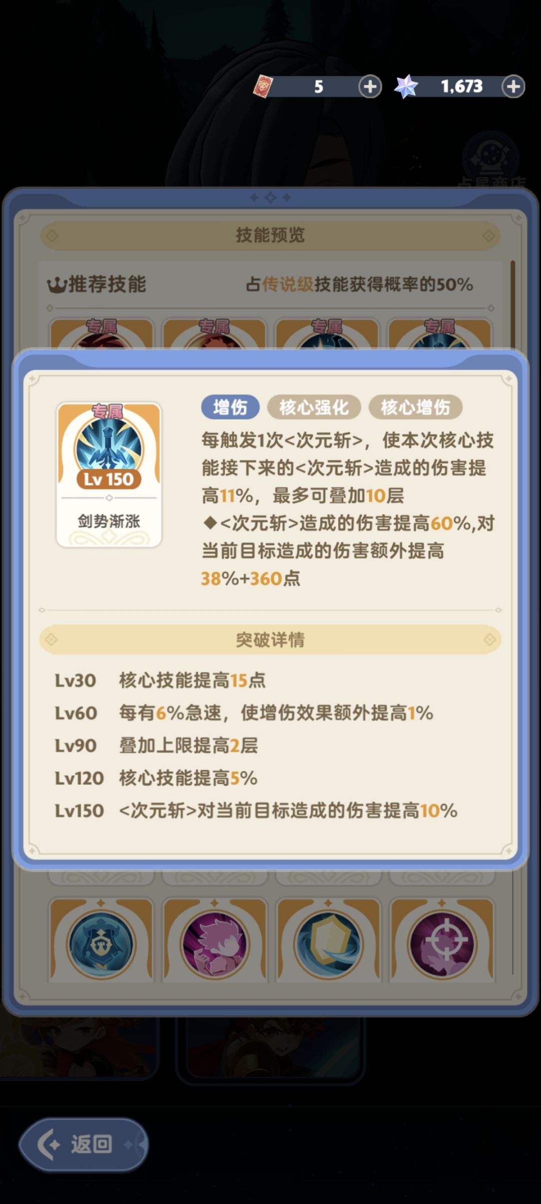 技能还有星级也分蓝-紫-金,每个等级分5个小级也就是15星满星