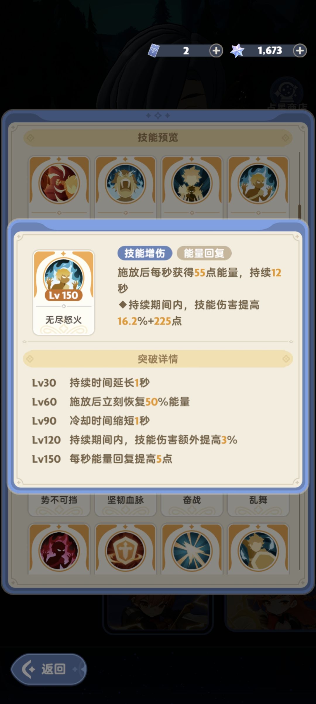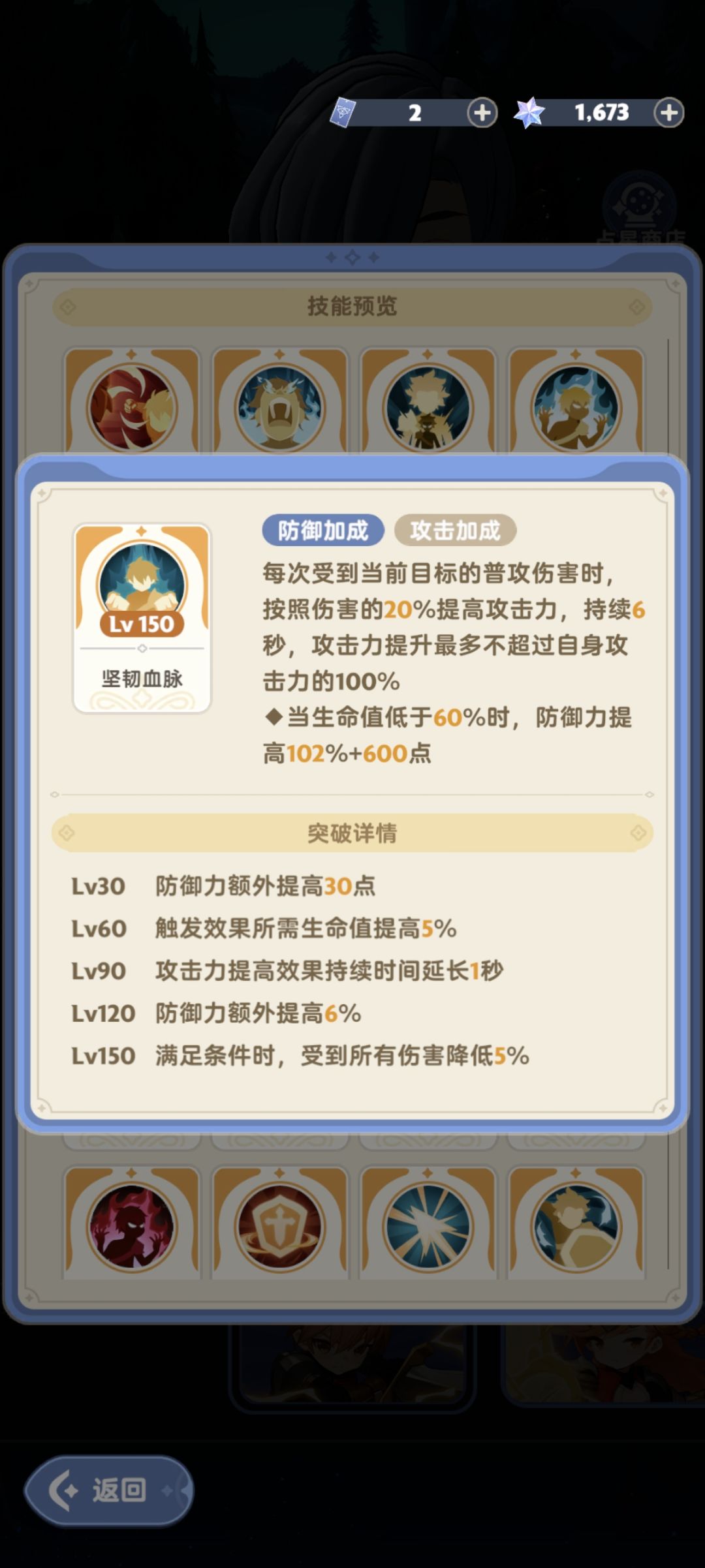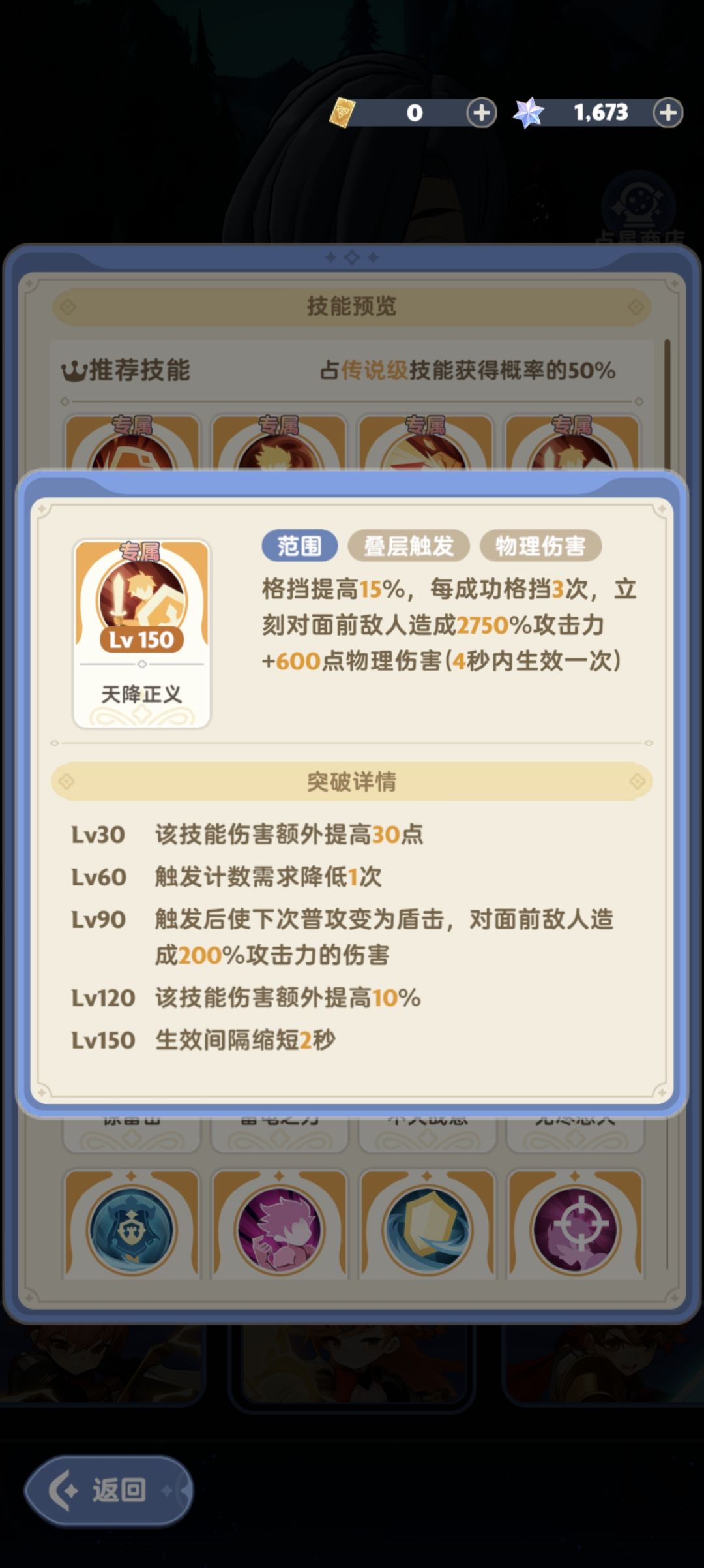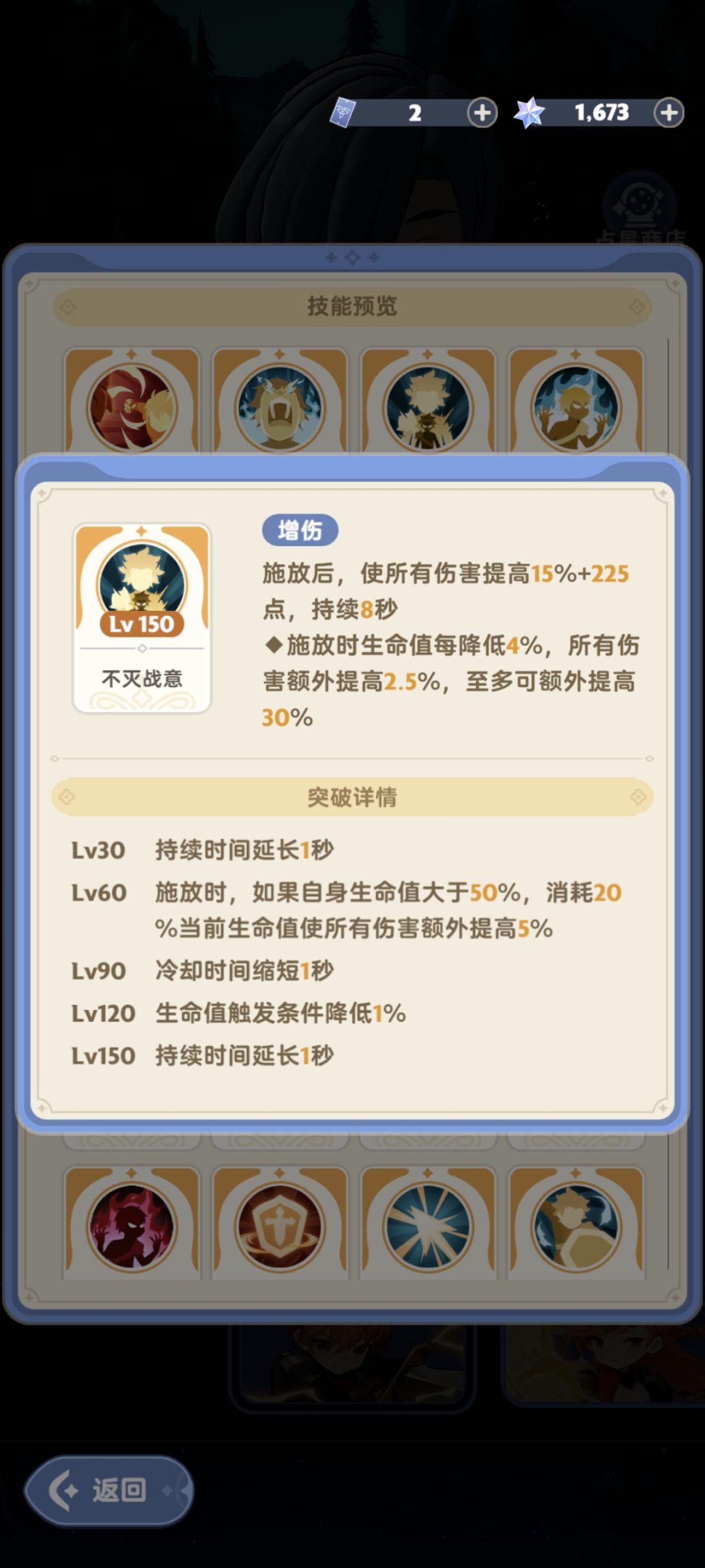 技能还有星级也分蓝-紫-金,每个等级分5个小级也就是15星满星