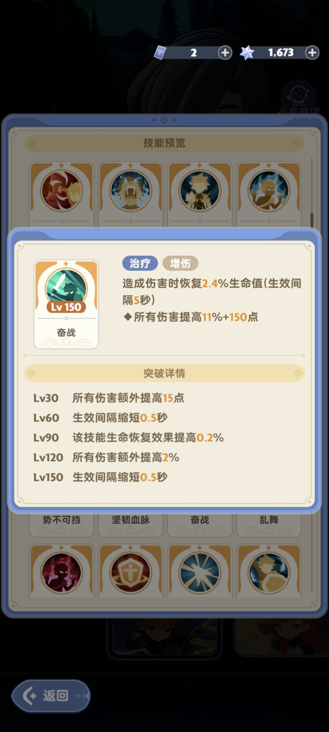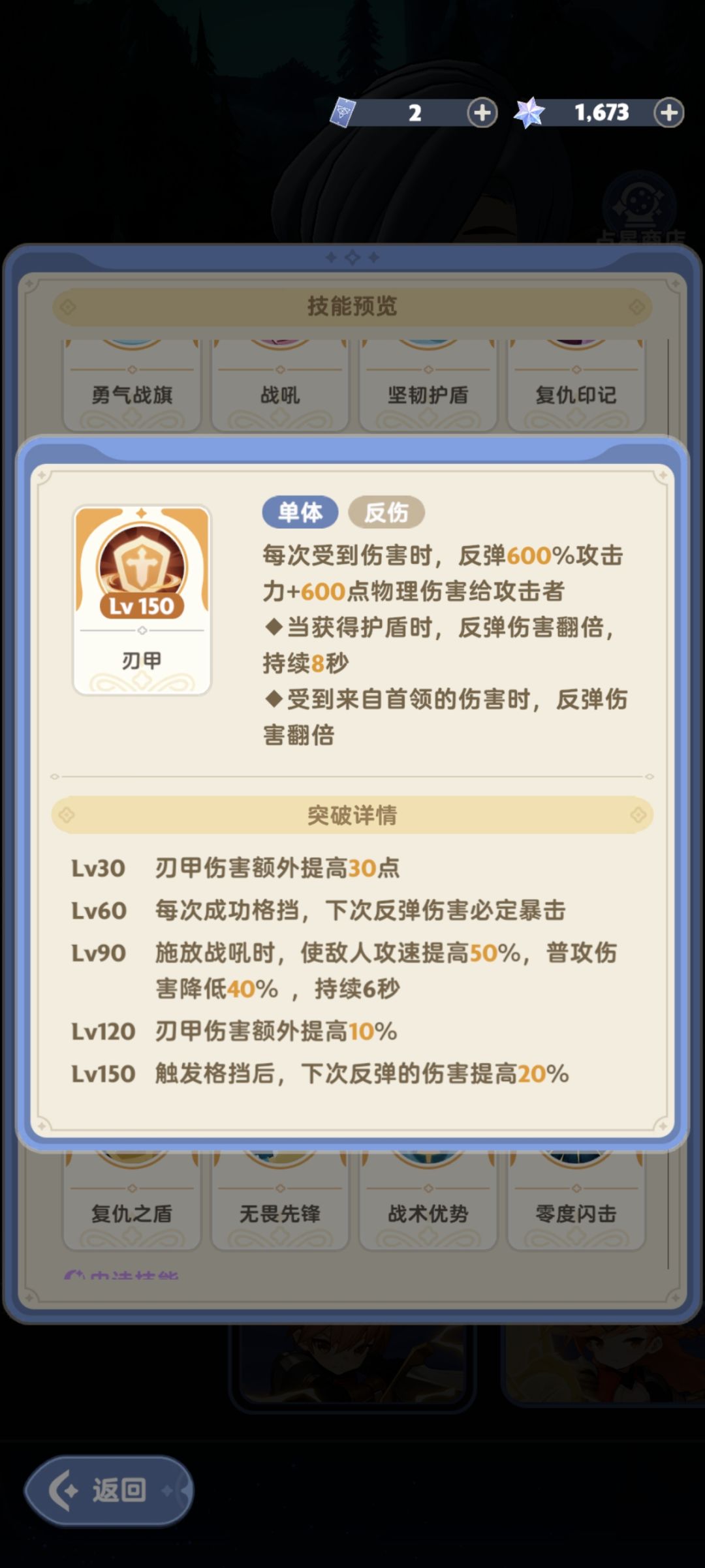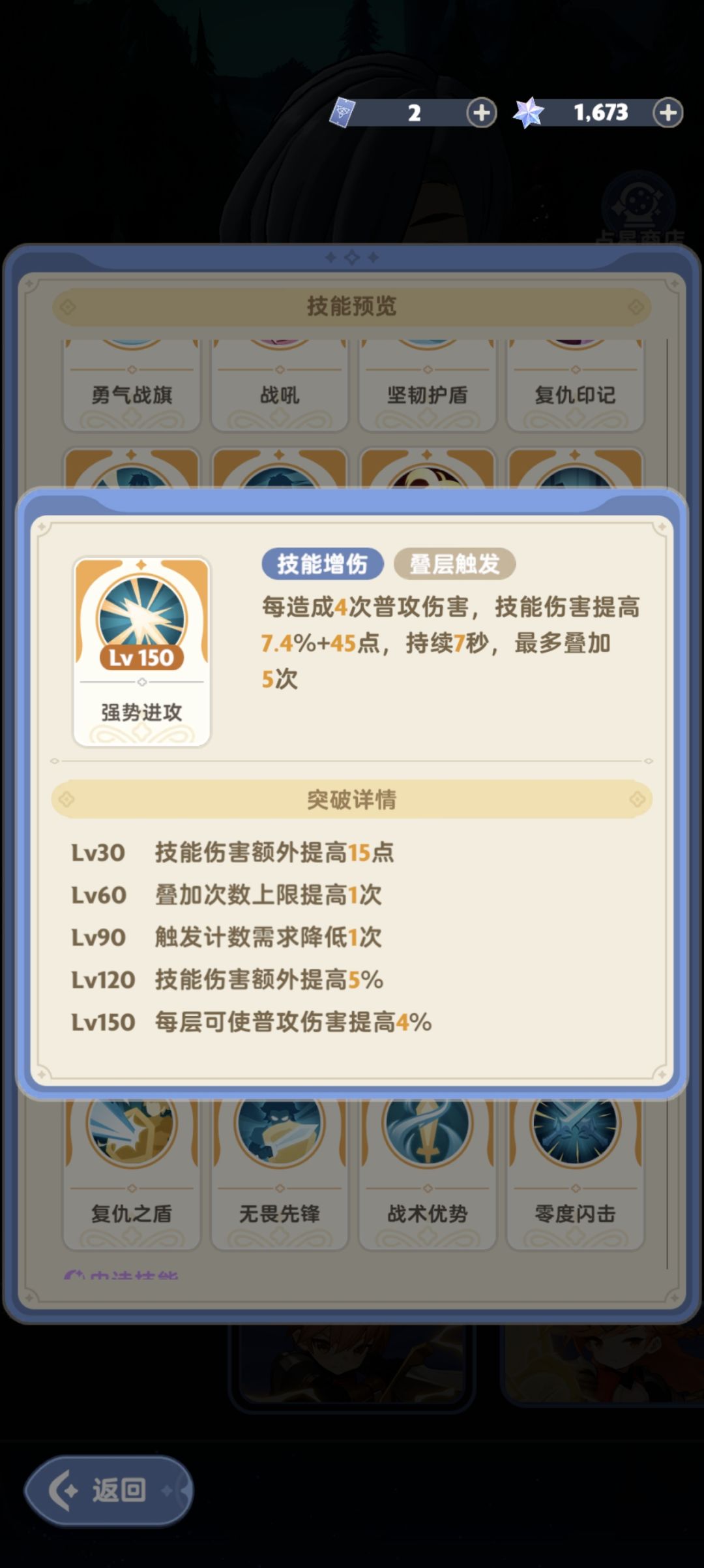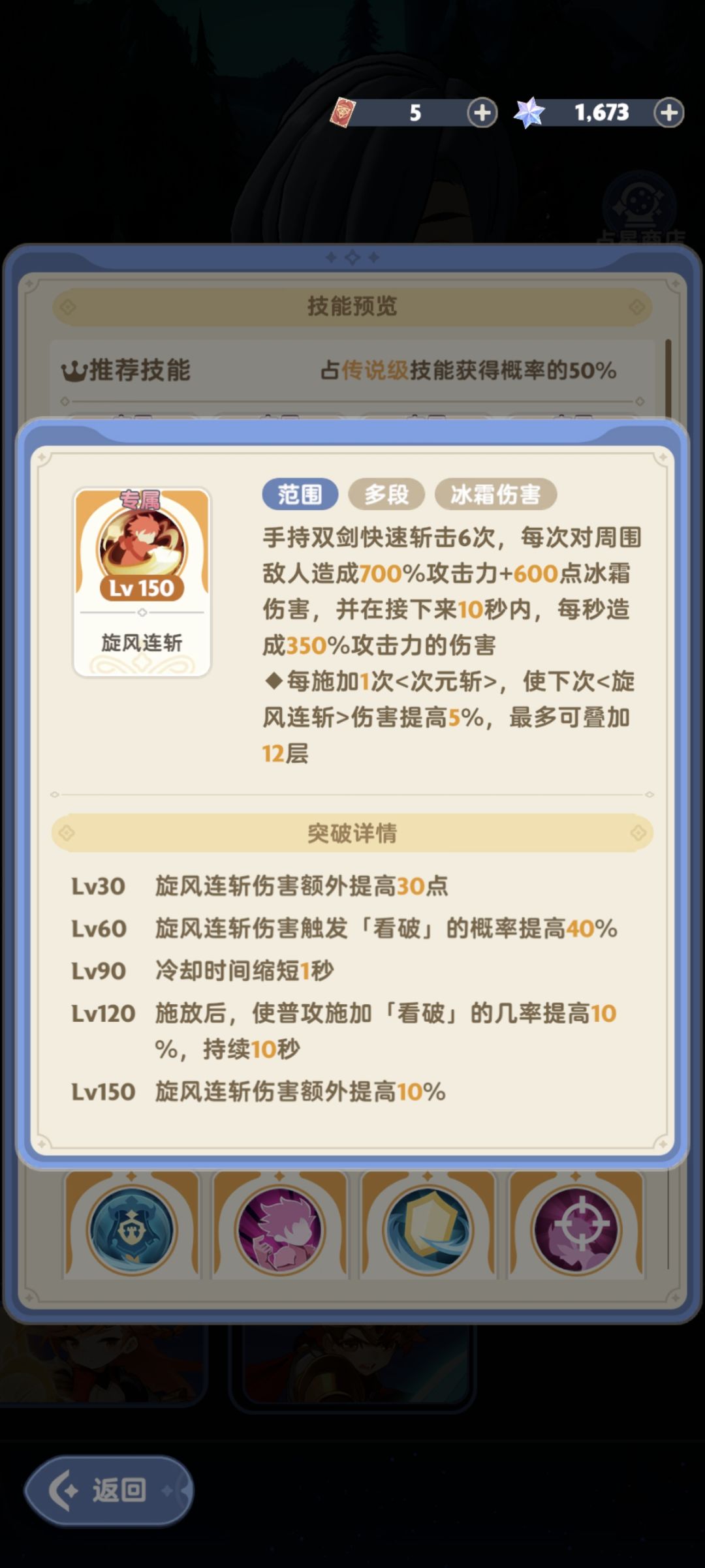 技能还有星级也分蓝-紫-金,每个等级分5个小级也就是15星满星