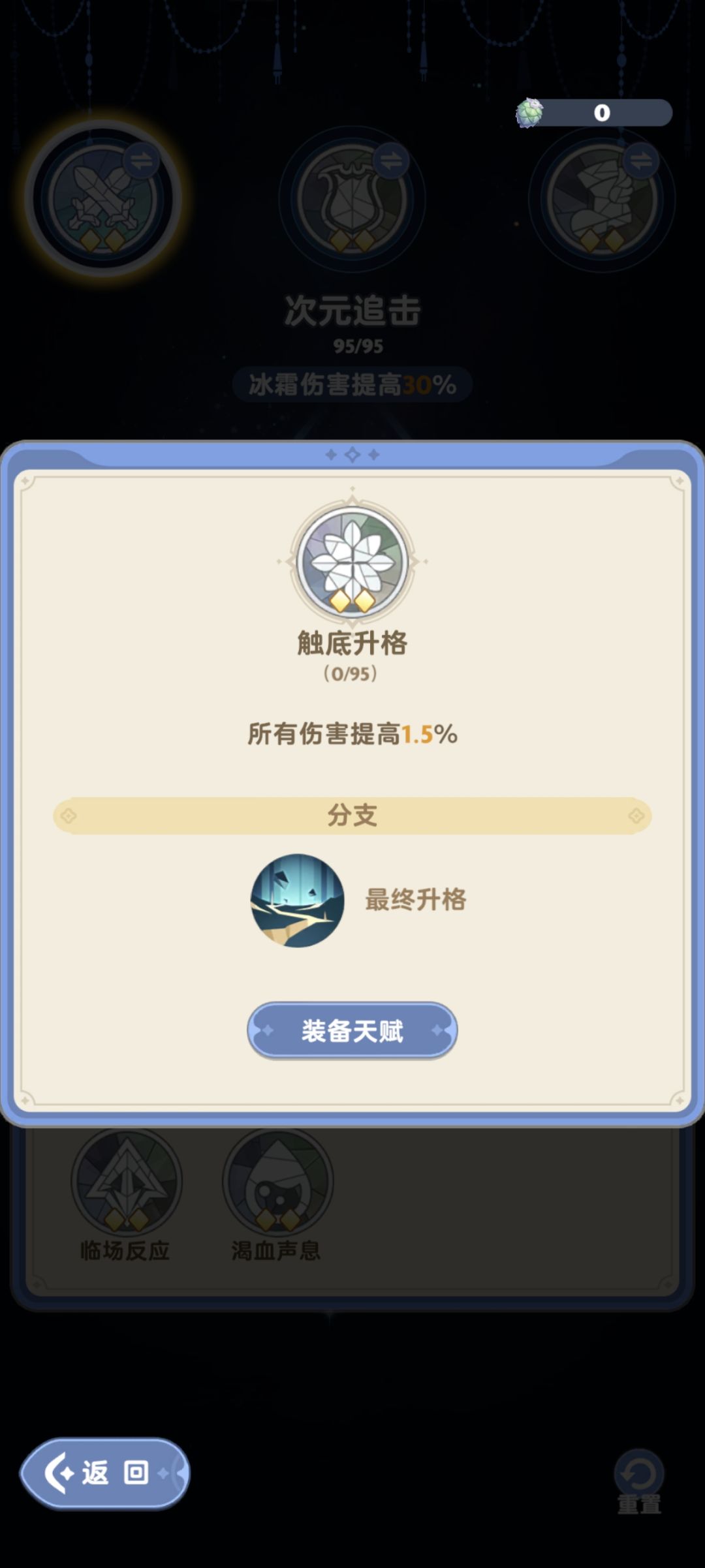 天赋效果和名字差不多有暴击,有冷却,有肉,有奶,看着选择很多其实基本剑士2转之前固定了迅雷突刺和不退,2转后如果只是白嫖和月卡玩家选择也一样,因为主线和副本不氪金,扛不住只能靠时间积累慢慢玩,剑士二转之前核心天赋➕不退,二转后核心天赋➕不退➕加速冷却或者渴血