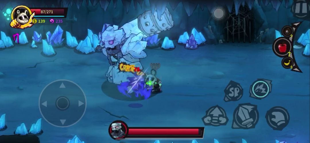 攻略:不能站boss前方,容易中伞型雷劈;也不能离得太远,看准boss动作就行进攻,斜着跳a蹭刀即可,boss技能后摇都很长,特别是喷冰的时候是最佳输出时间点。