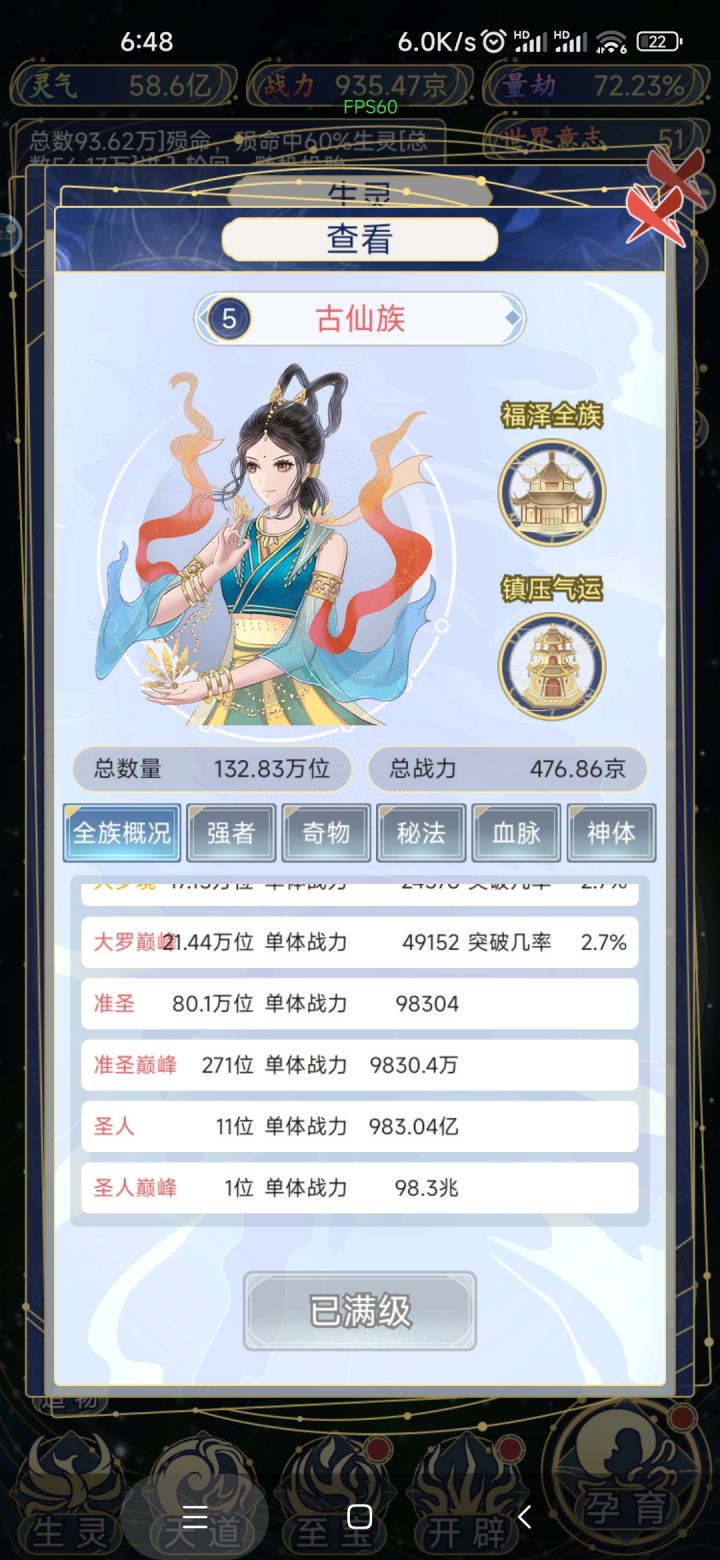 3.前期本源优先开辟福地,升级增加灵气的福地,升级人族等级,战体和至宝优先级不高,可以等以后再升。