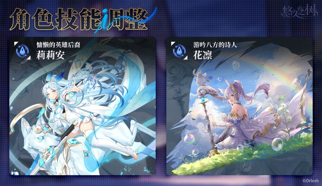 我们计划于2024年3月6日停服更新维护中,对角色[慵懒的英雄后裔]莉莉安、[游吟八方的诗人]花凛的技能进行调整。详情如下: