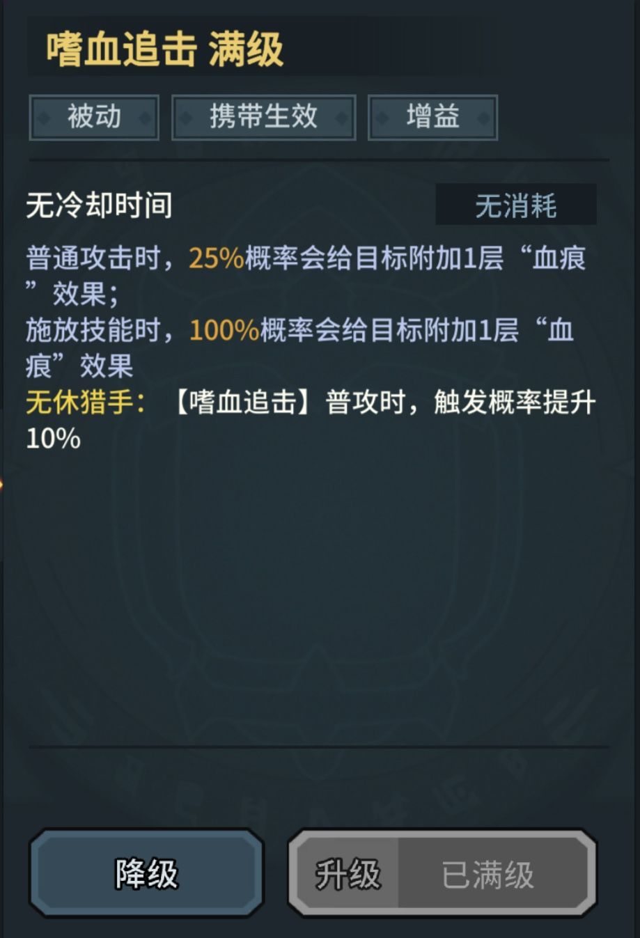 首先,不需要携带就能生效的技能,满级不解释,这里主要说一下四个携带技能。
